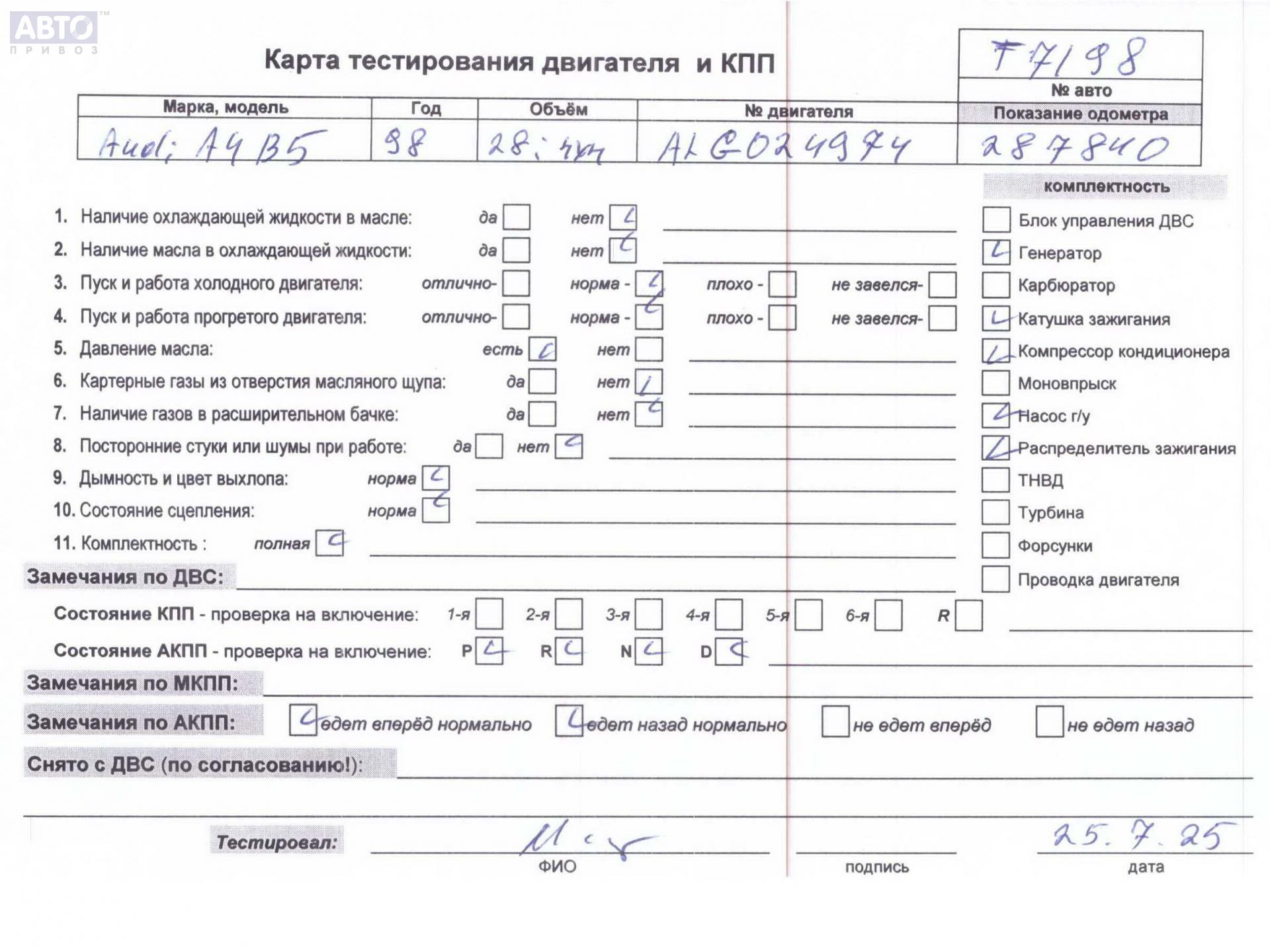 Купить с доставкой б/у ALG, Двигатель (ДВС) для Audi A4 B5, 1998, (54922666) с разборки в Минске и Беларуси.