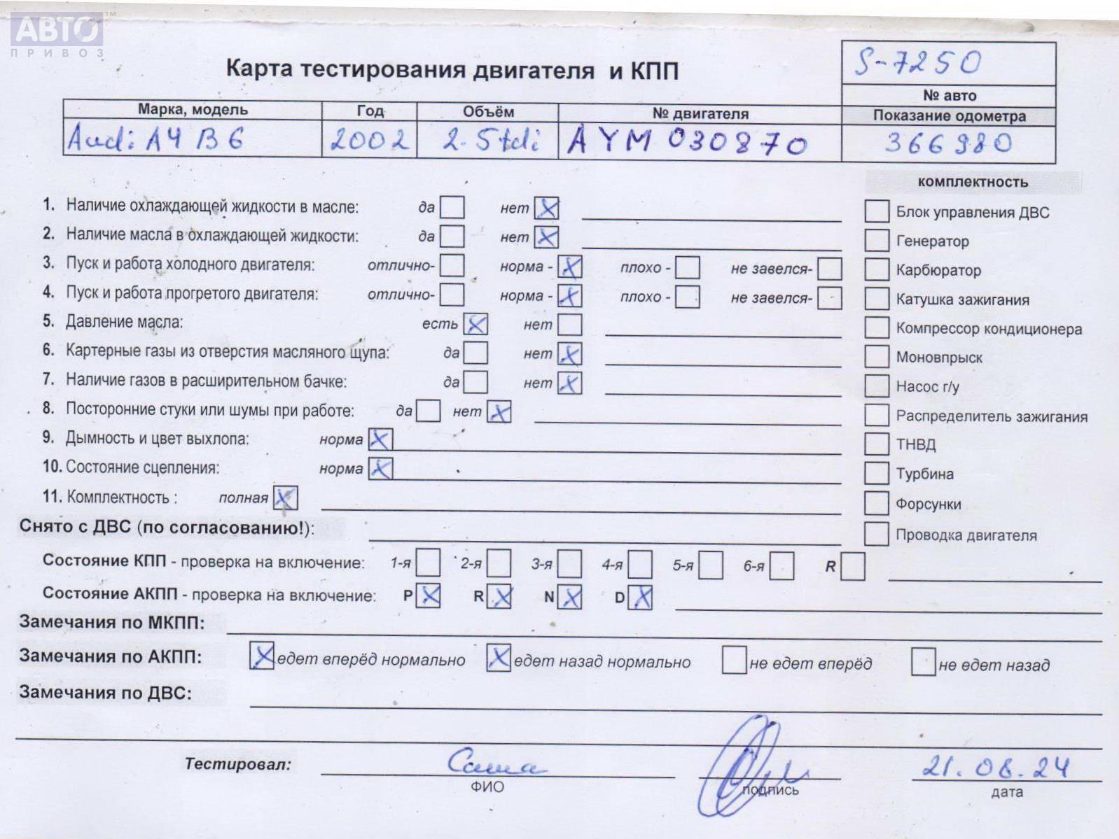 Хотите купить надежную б/у запчасть Двигатель (ДВС)? У нас в наличии есть б/у автозапчасти оригинальные, хорошего качества по приемлемым ценам. Практически на все наши запчасти мы предоставляем проверочный срок (от 14 до 30 дней) (https://www.autopriwos.by/return.html). На сайте Вы можете подобрать деталь по оригинальному номеру, маркировке. Каждая запчасть Двигатель (ДВС) для Audi A4 B6, 2002, купить б/у (54532517) проходит внешнюю проверку, чтобы исключить неработающие детали и обеспечит работоспособность нашей запчасти и вашего автомобиля.