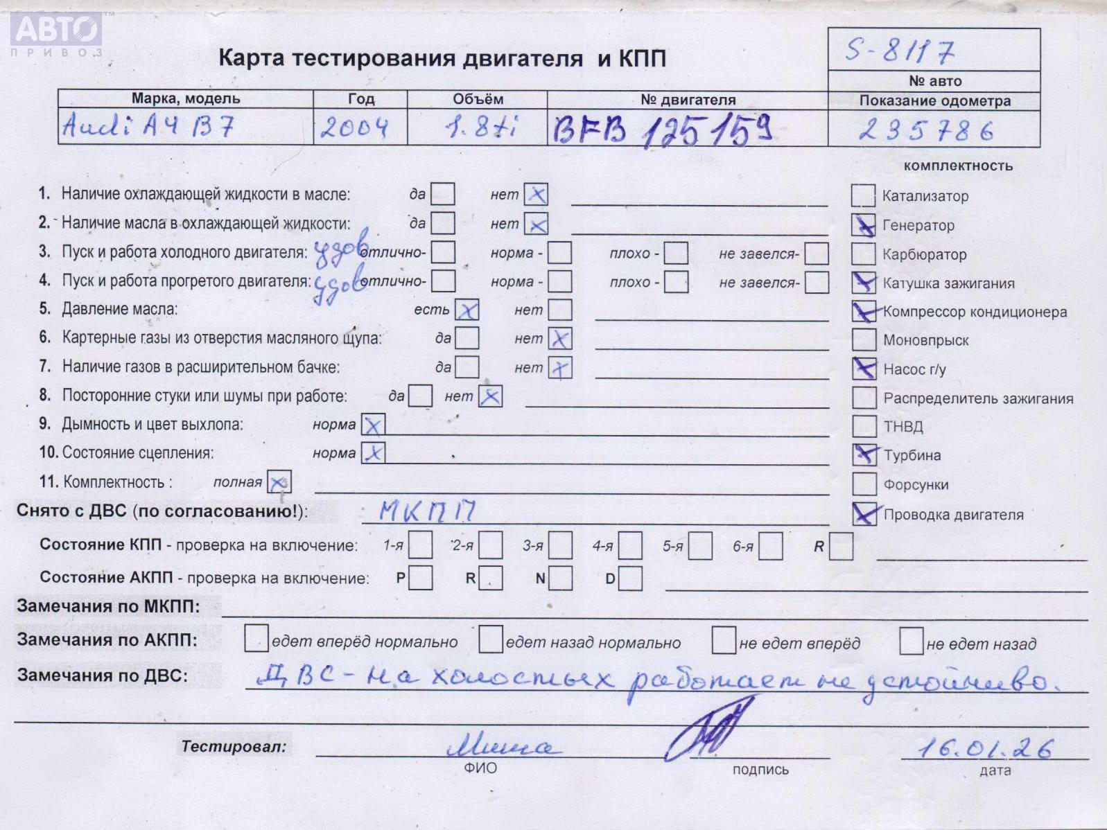 | Автомобиль / VIN: | S8117 WAUZZZ8E46A242372 |