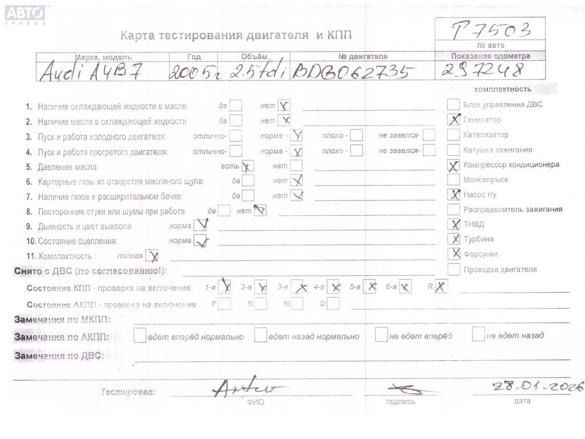 | Автомобиль / VIN: | T7503 WAUZZZ8E85A506515 |