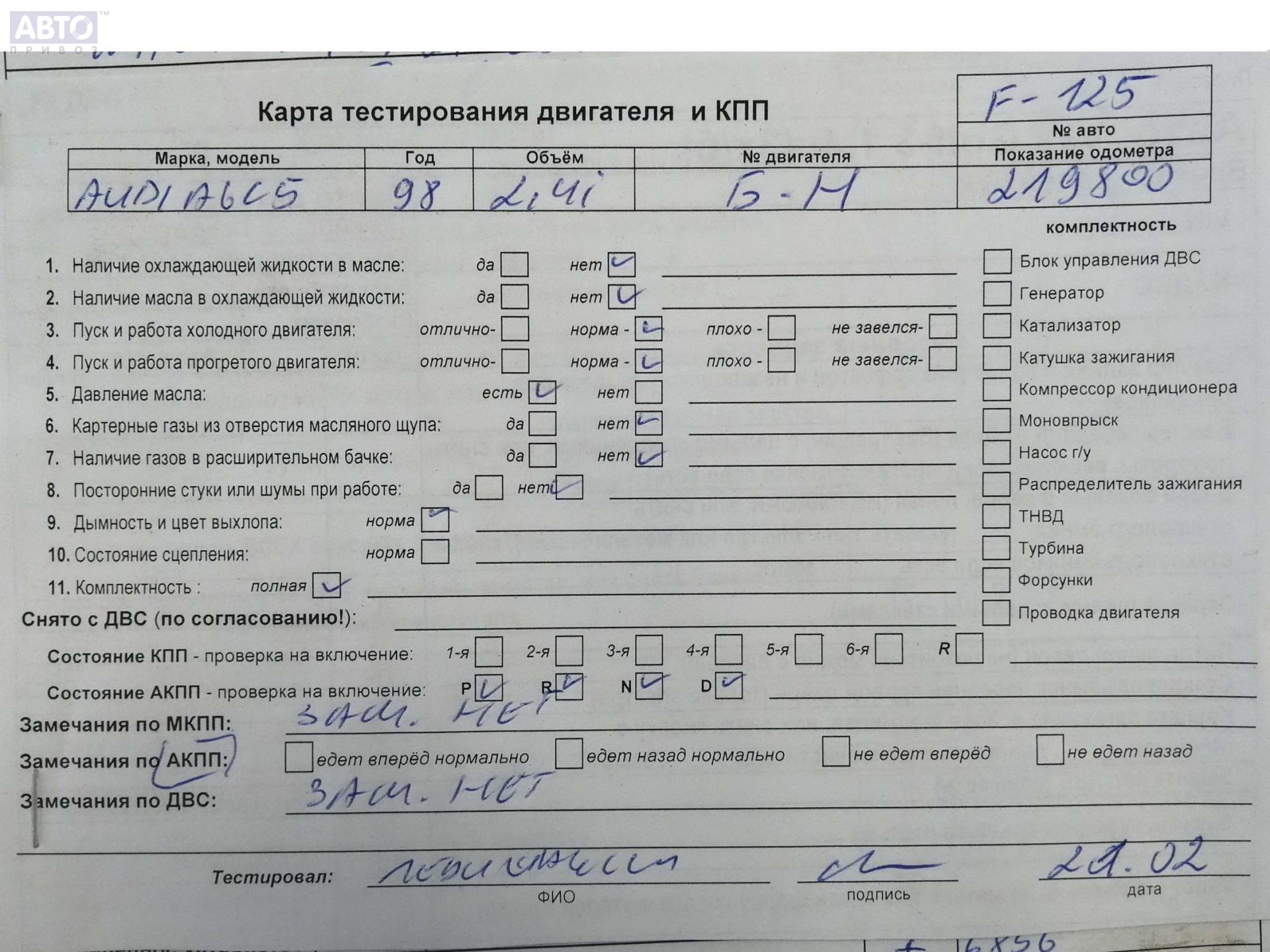 | Марка / Модель / Год: | Audi A6 C5 (1997-2005) 2002 |