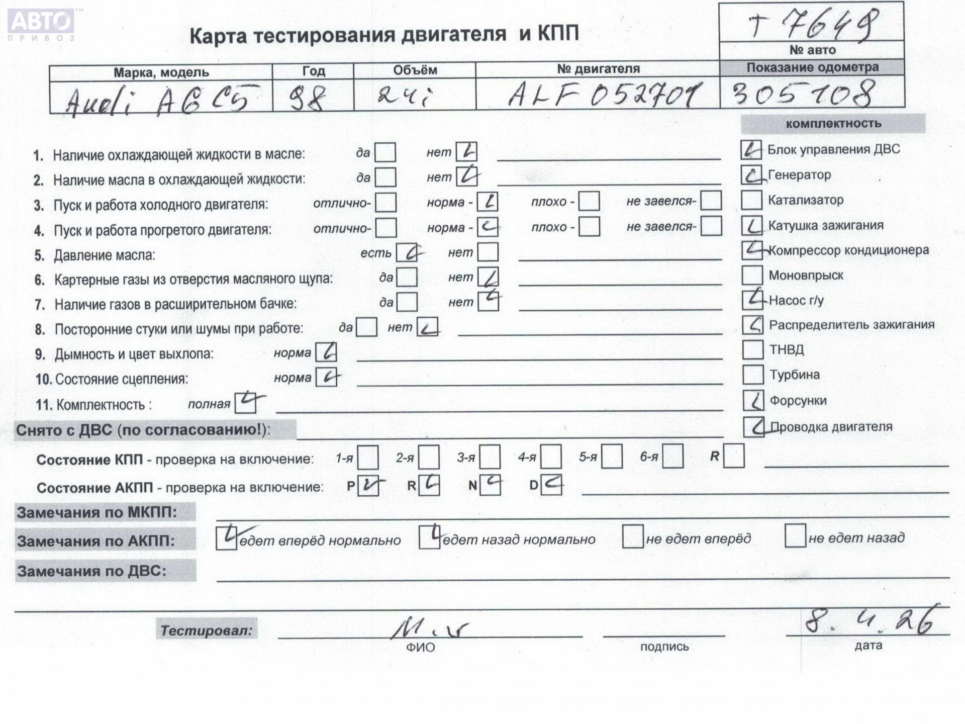 Купить с доставкой б/у ALF, Двигатель (ДВС) для Audi A6 C5, 1998, (54953154) с разборки в Минске и Беларуси.