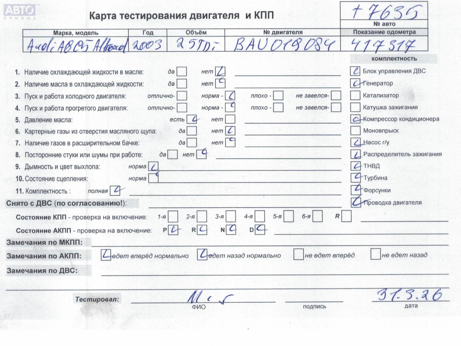 | 54952975 | КПП автоматическая (АКПП); 2003; 2.5л; Дизель; TD; Универсал; серый; |