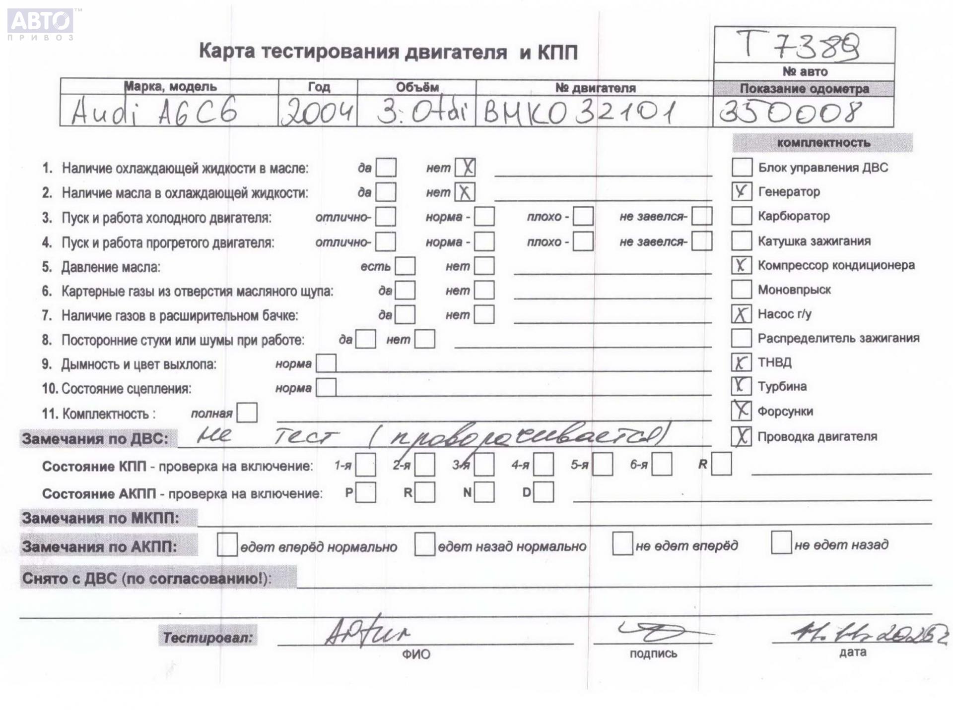 | Марка / Модель / Год: | Audi A6 C6 (2004-2011) 2004 |