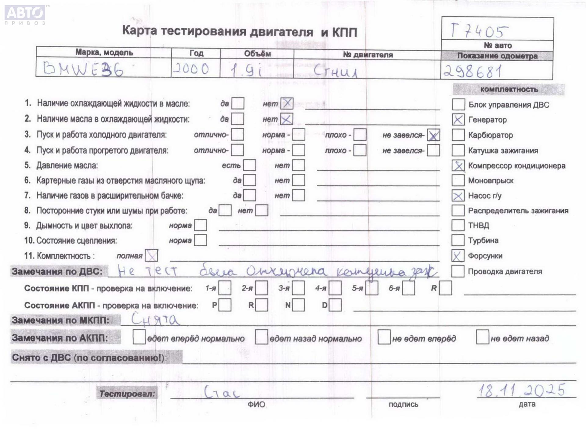 | Автомобиль / VIN: | T7405 WBACS11080FR99831 |