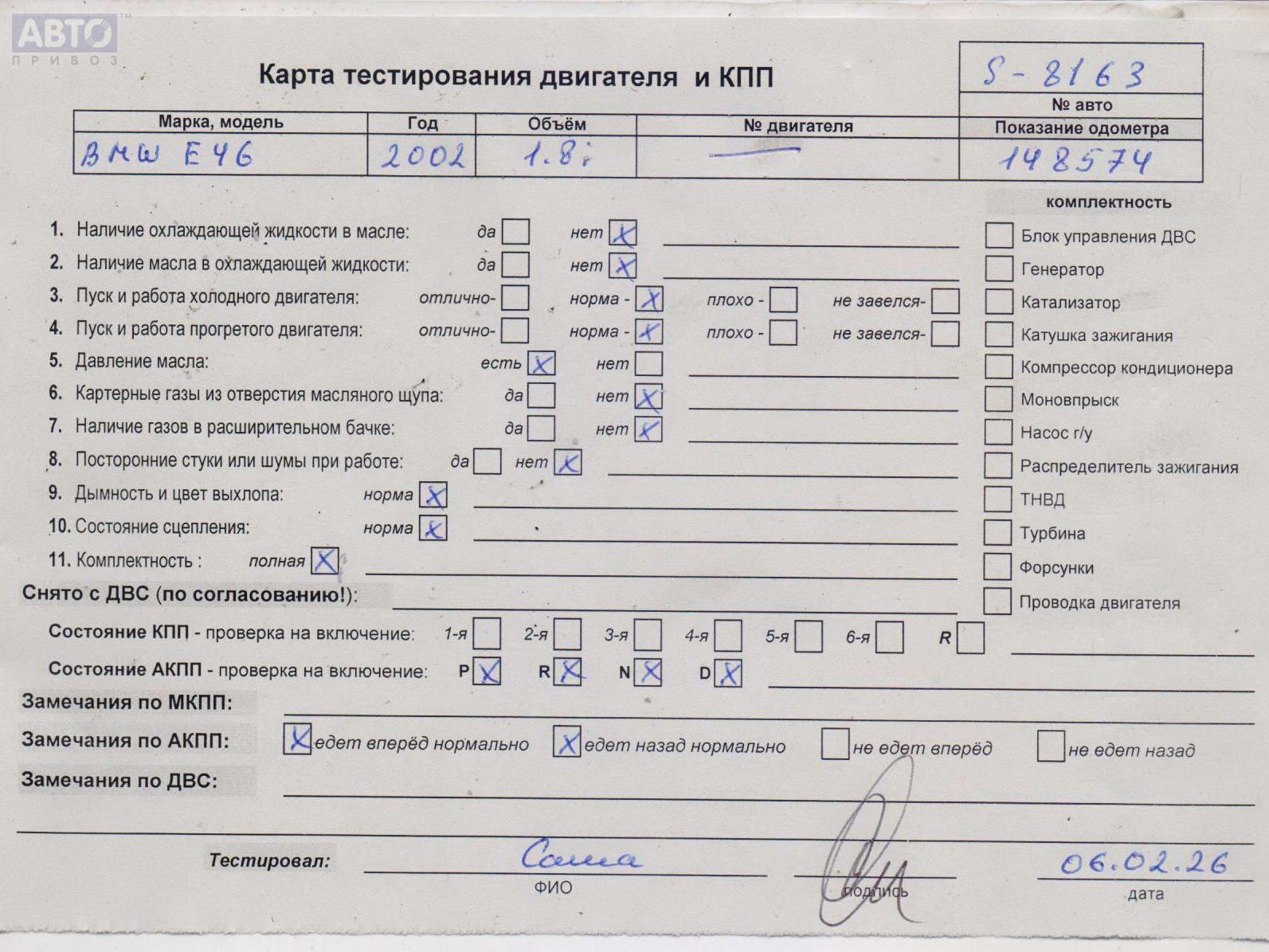 Хотите купить надежную б/у запчасть Двигатель (ДВС)? У нас в наличии есть б/у автозапчасти оригинальные, хорошего качества по приемлемым ценам. Практически на все наши запчасти мы предоставляем проверочный срок (от 14 до 30 дней) (https://www.autopriwos.by/return.html). На сайте Вы можете подобрать деталь по оригинальному номеру, маркировке. Каждая запчасть Двигатель (ДВС) для BMW 3 E46, 2002, купить б/у (54794796) проходит внешнюю проверку, чтобы исключить неработающие детали и обеспечит работоспособность нашей запчасти и вашего автомобиля.