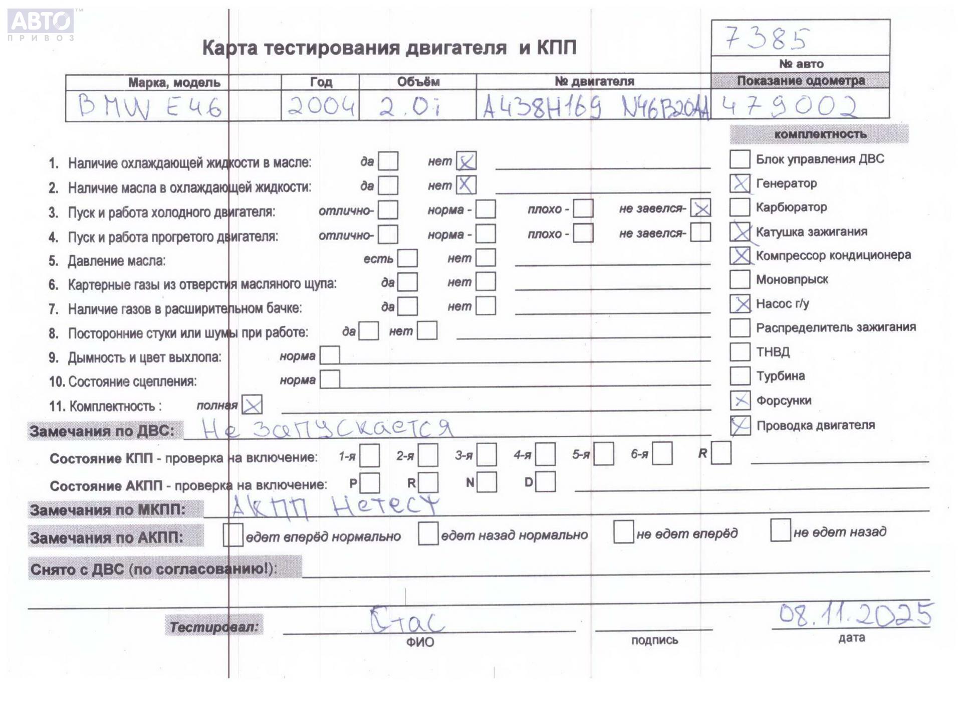 | Марка / Модель / Год: | BMW 3 E46 (1998-2006) 2004 |