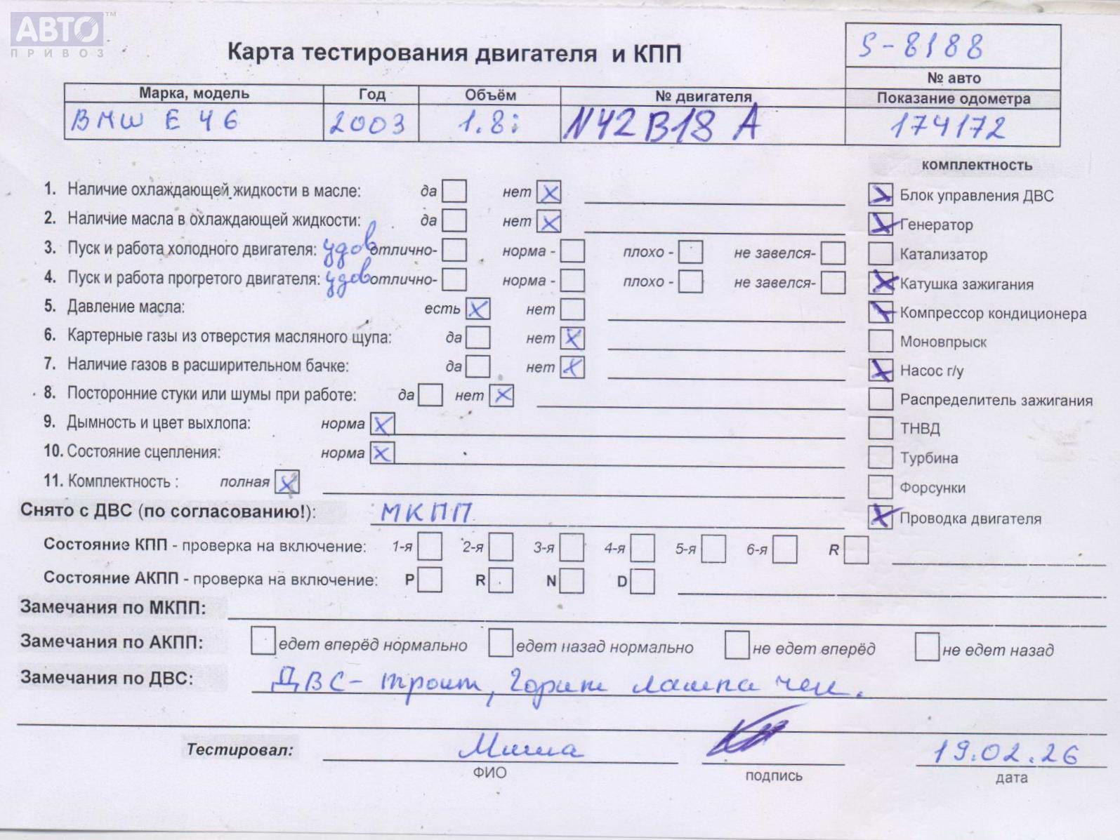 Хотите купить надежную б/у запчасть Двигатель (ДВС)? У нас в наличии есть б/у автозапчасти оригинальные, хорошего качества по приемлемым ценам. Практически на все наши запчасти мы предоставляем проверочный срок (от 14 до 30 дней) (https://www.autopriwos.by/return.html). На сайте Вы можете подобрать деталь по оригинальному номеру, маркировке. Каждая запчасть Двигатель (ДВС) для BMW 3 E46, 2002, купить б/у (55215732) проходит внешнюю проверку, чтобы исключить неработающие детали и обеспечит работоспособность нашей запчасти и вашего автомобиля.