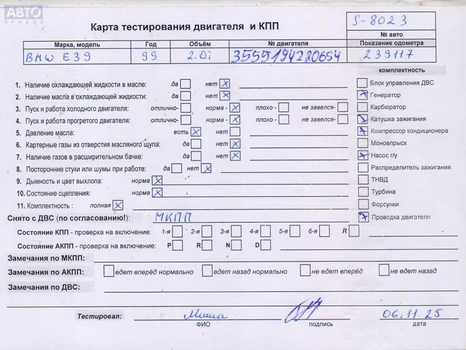 | Марка / Модель / Год: | BMW 5 E39 (1995-2003) 1999 |