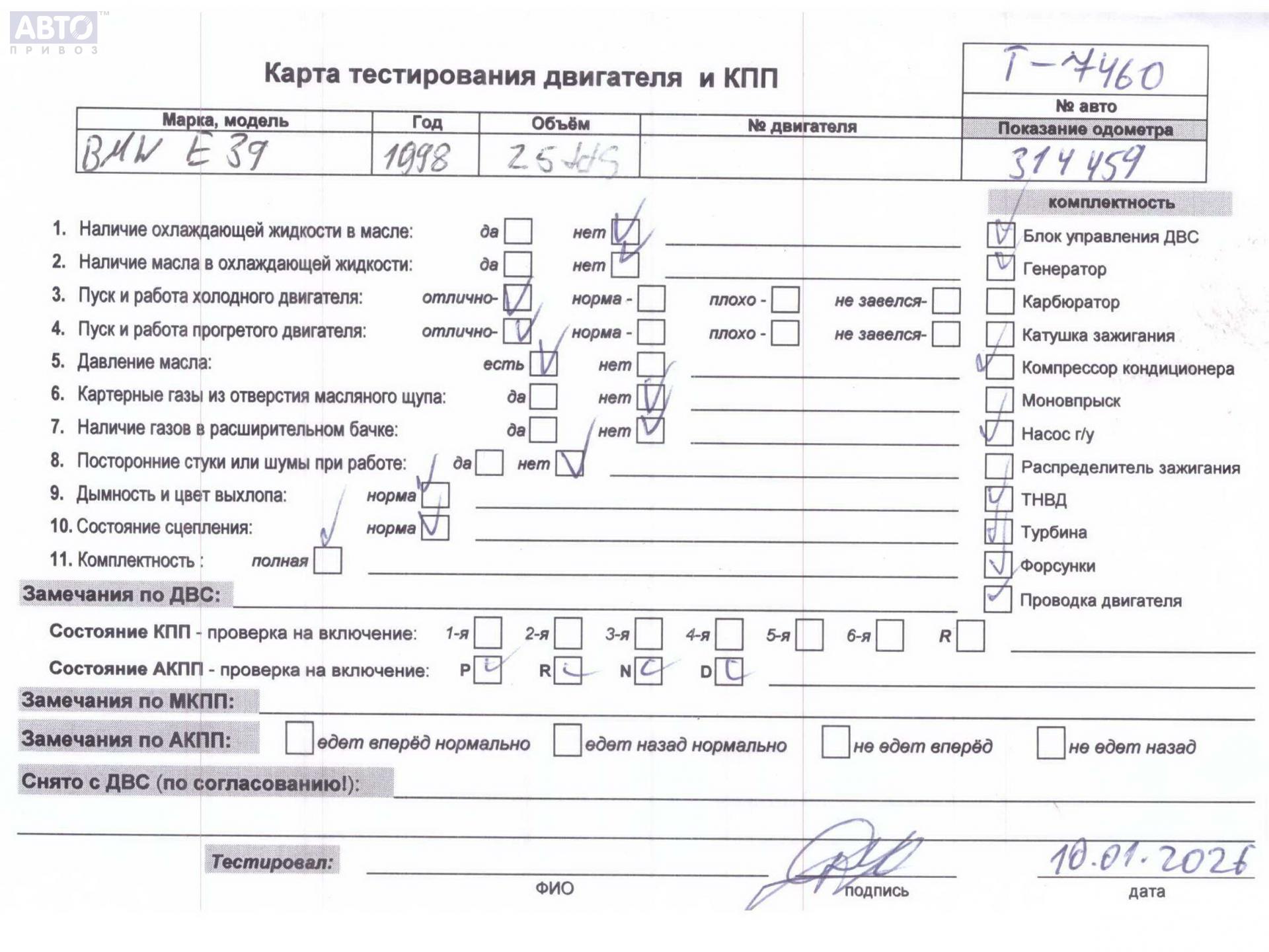 | Автомобиль / VIN: | T7460 WBADF81020BT12819 |
