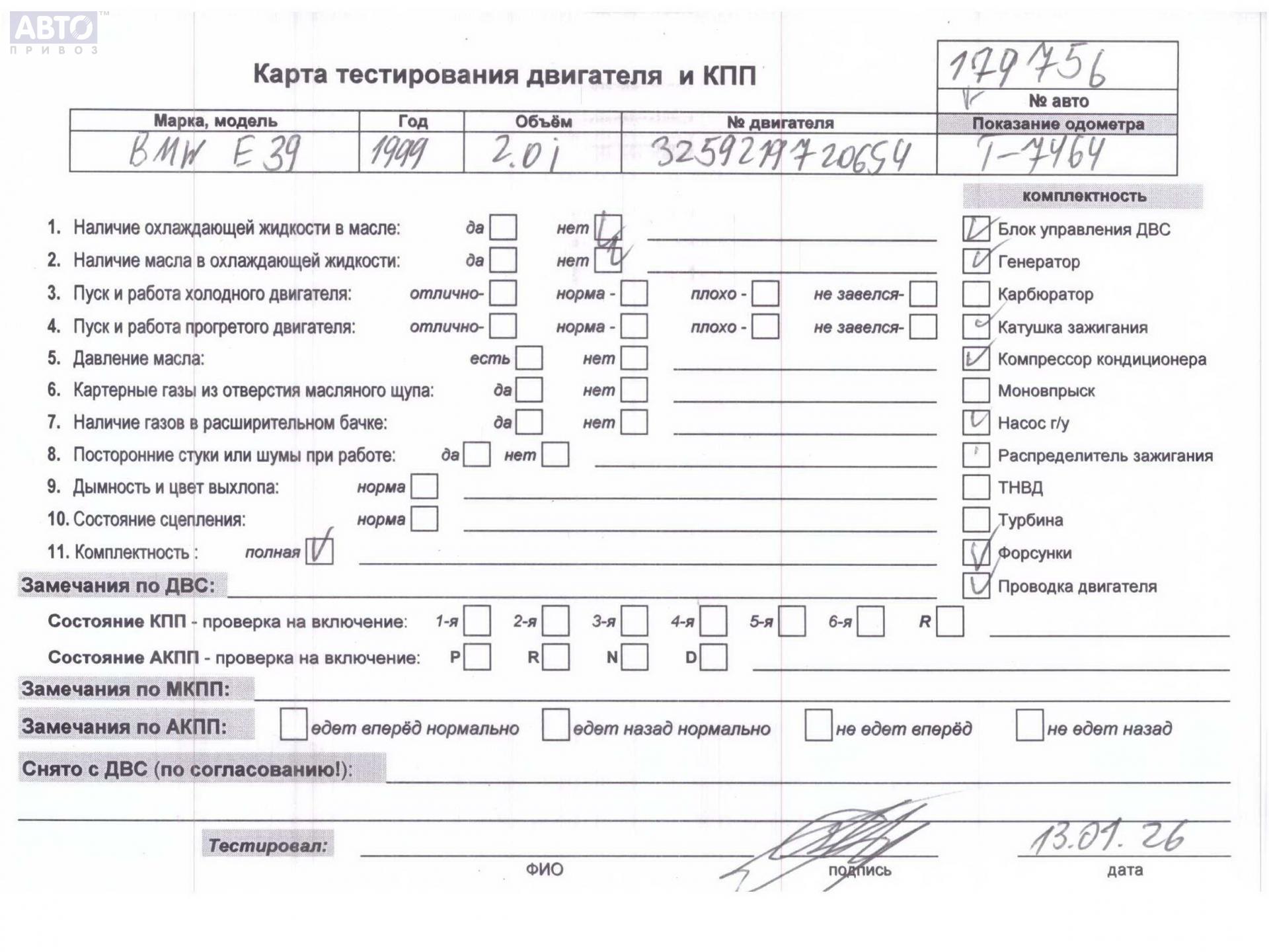 | Марка / Модель / Год: | BMW 5 E39 (1995-2003) 2000 |