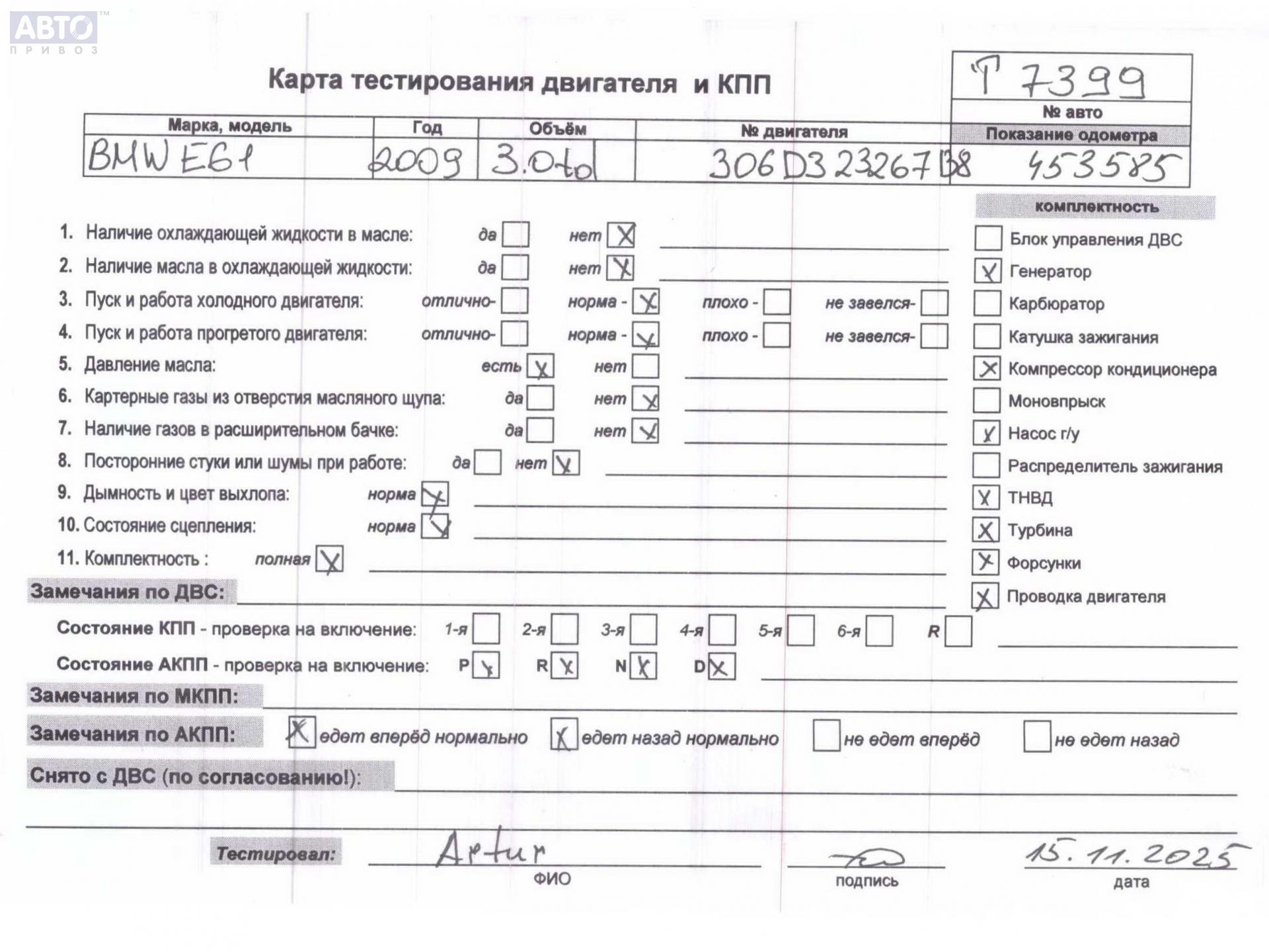 | Марка / Модель / Год: | BMW 5 E60/E61 (2003-2010) 2009 |