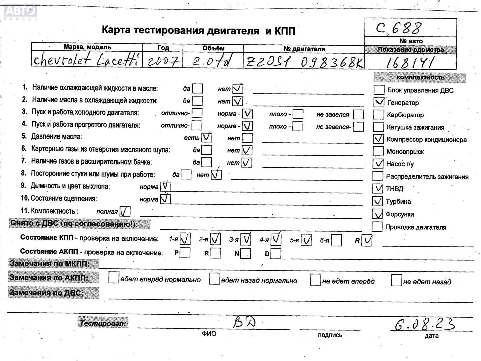| Марка / Модель / Год: | Chevrolet Lacetti 2007 |