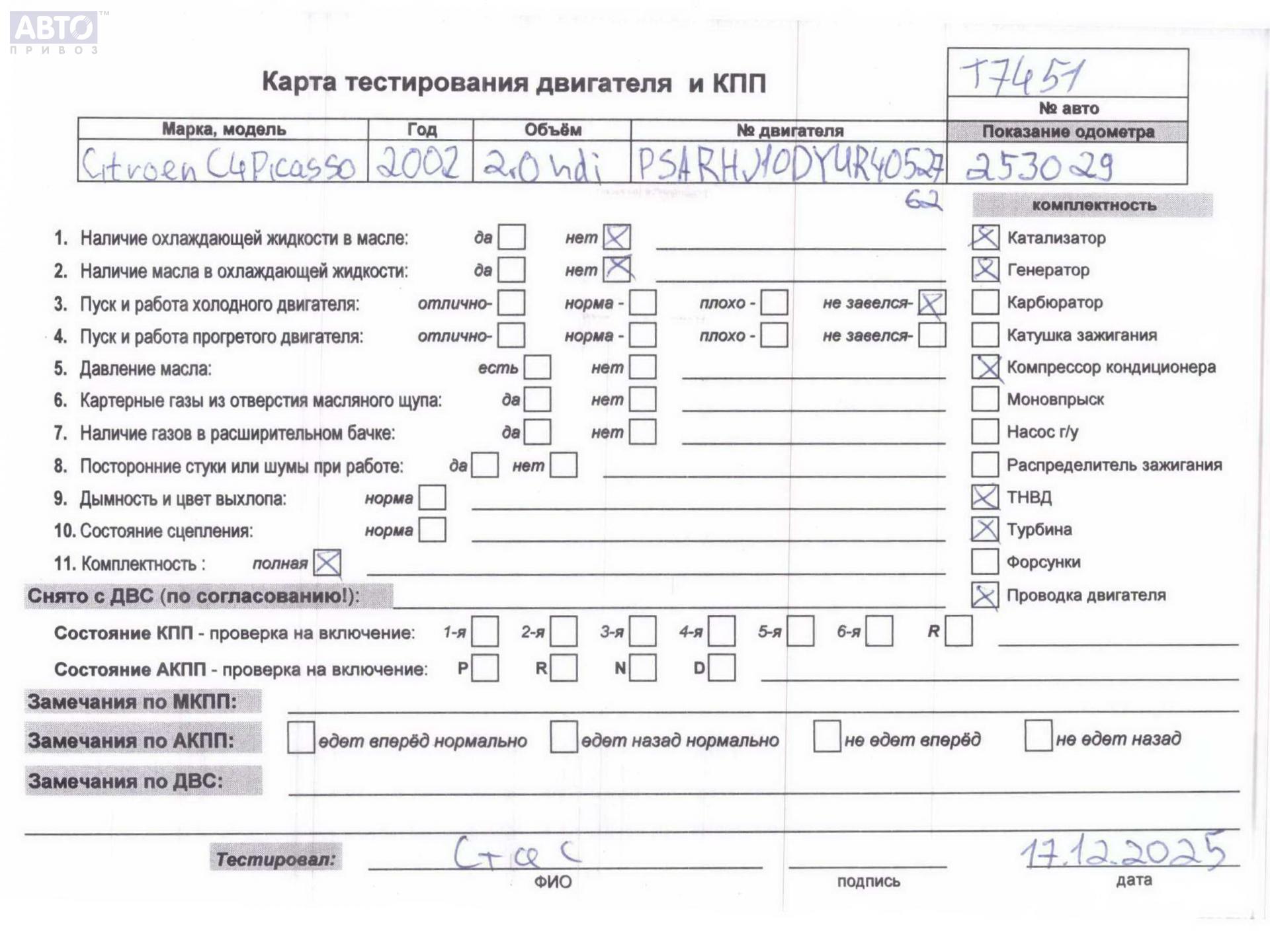 | Марка / Модель / Год: | Citroen C4 Picasso 2007 |