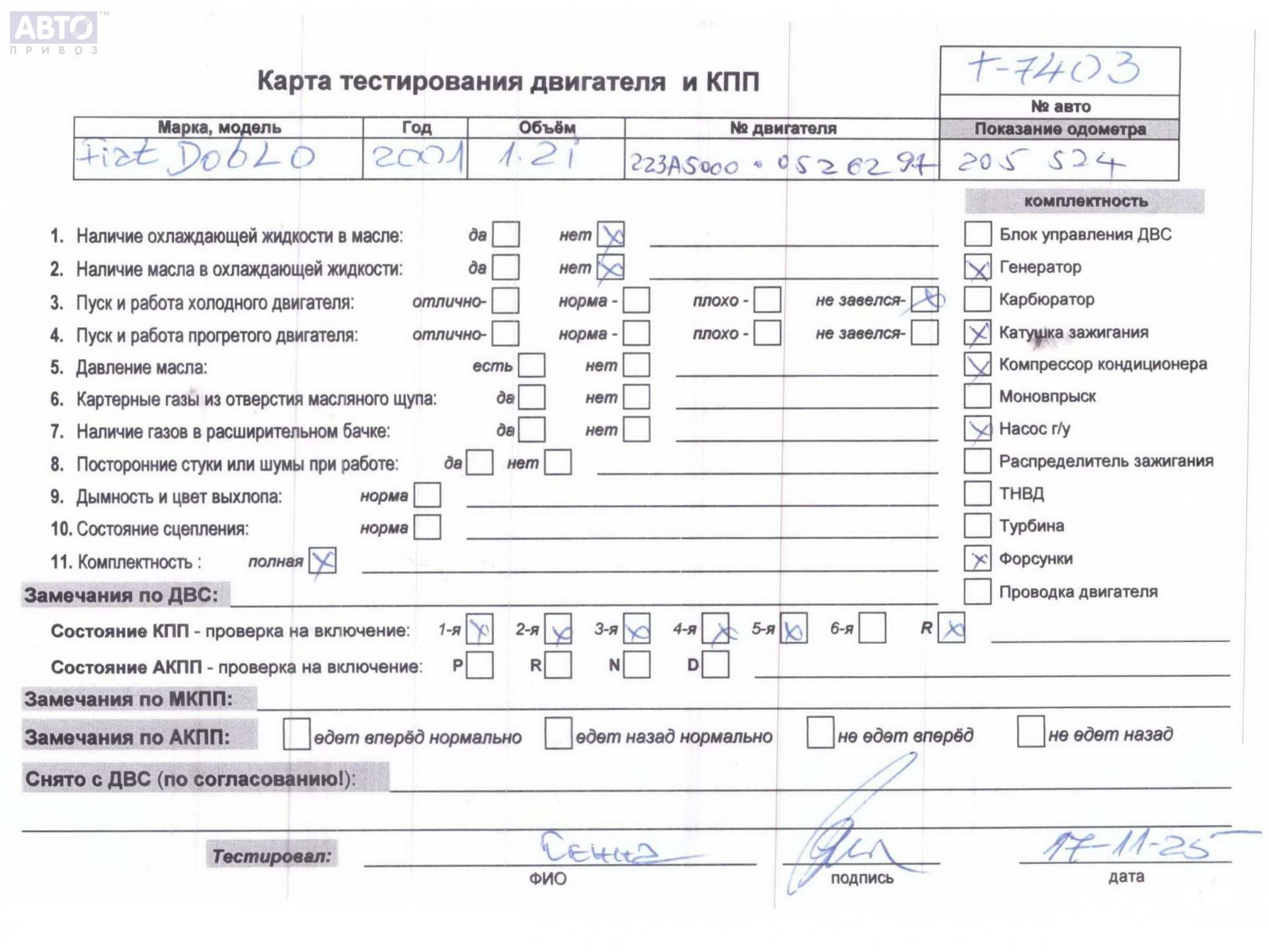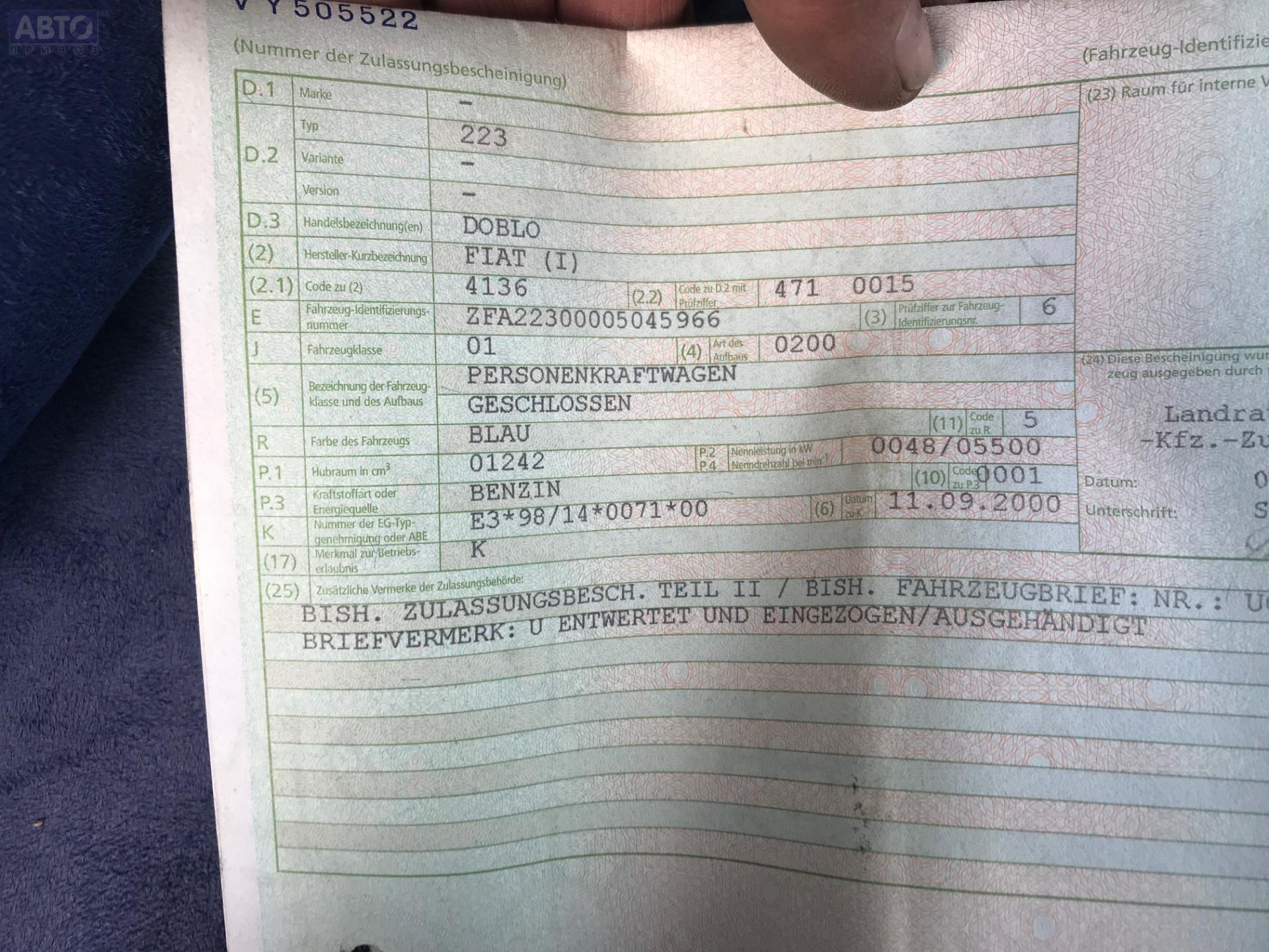 | Марка / Модель / Год: | Fiat Doblo (2000-2010) 2001 |