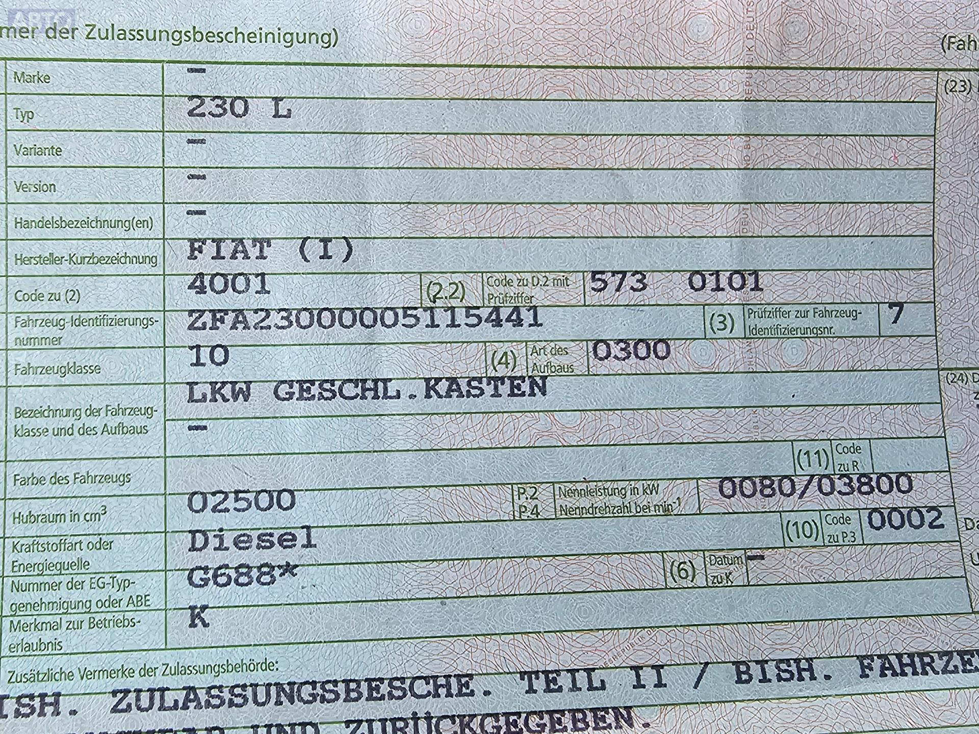 | Автомобиль / VIN: | T6856 ZFA23000005115441 |