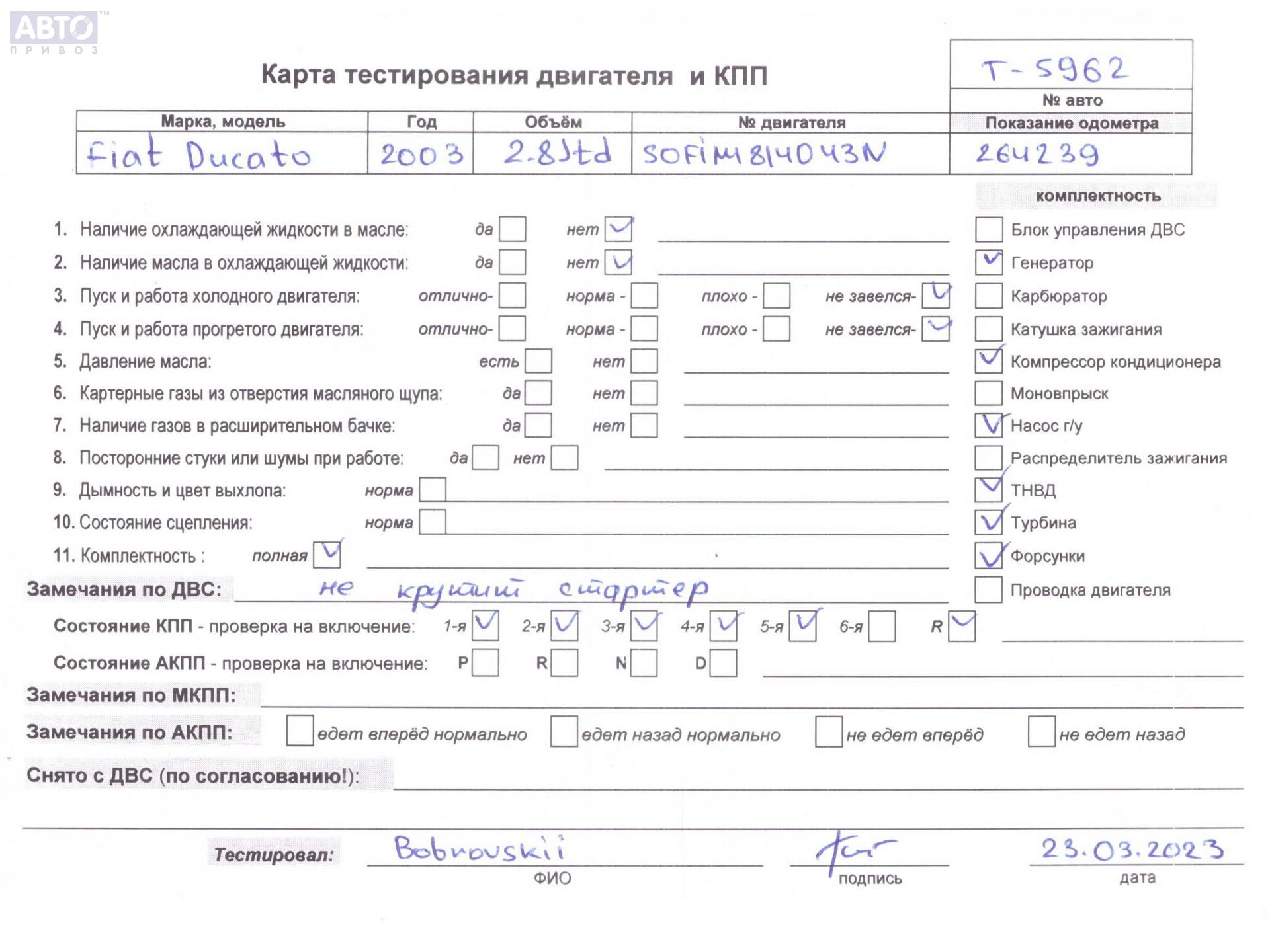 | Марка / Модель / Год: | Fiat Ducato (2002-2006) 2005 |
