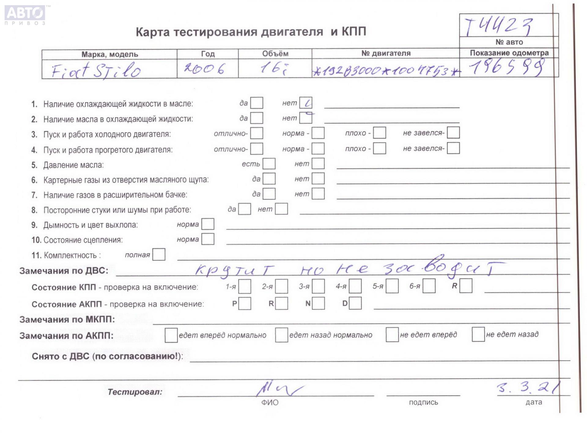 | Марка / Модель / Год: | Fiat Stilo 2006 |