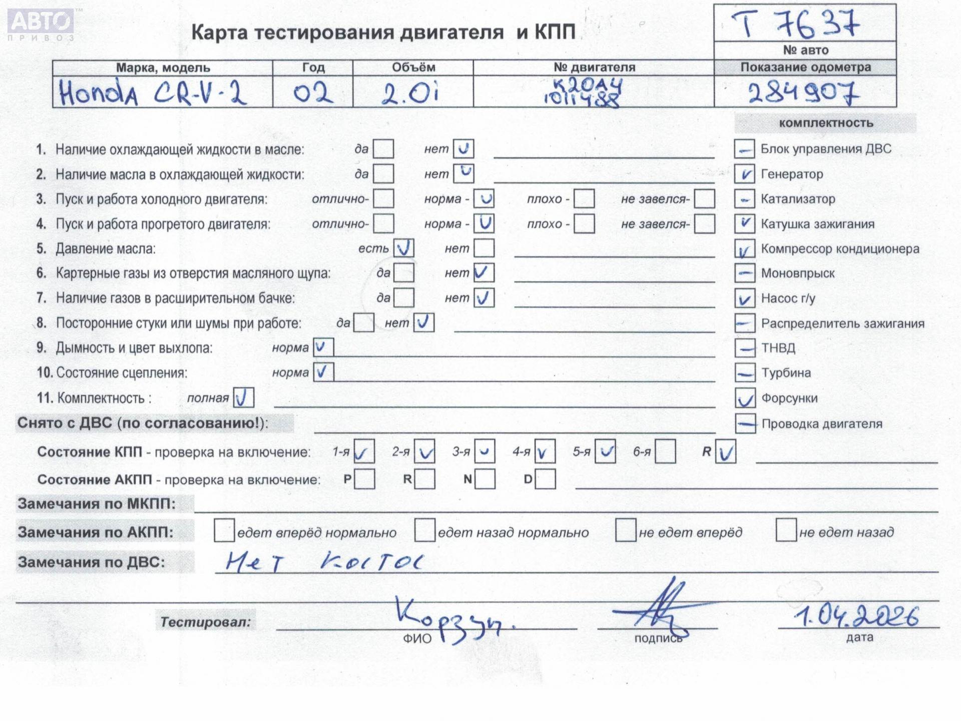| Примечания: | K20A4 1011488 цена без навесного |