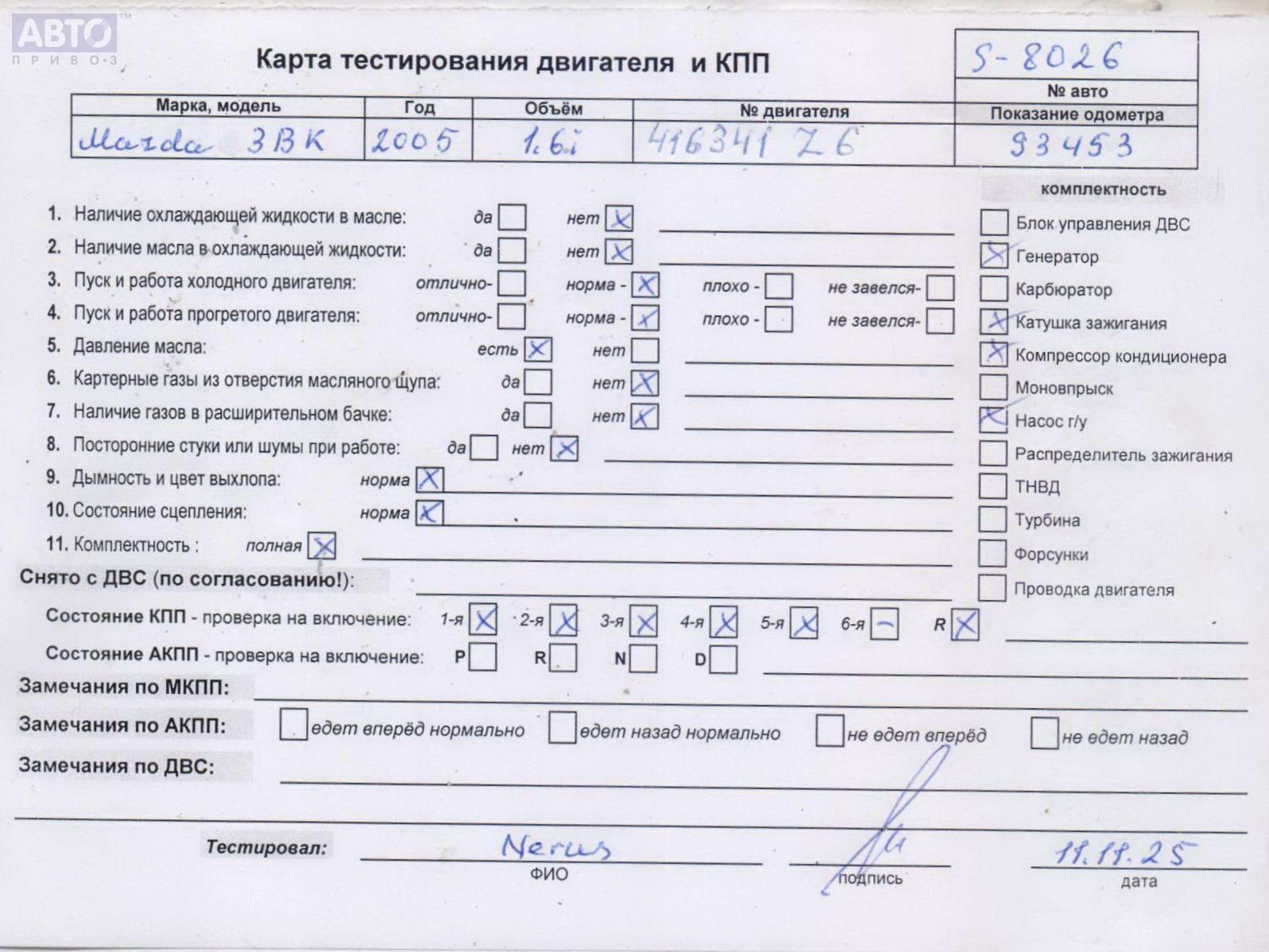 | Марка / Модель / Год: | Mazda 3 (2003-2008) BK 2005 |