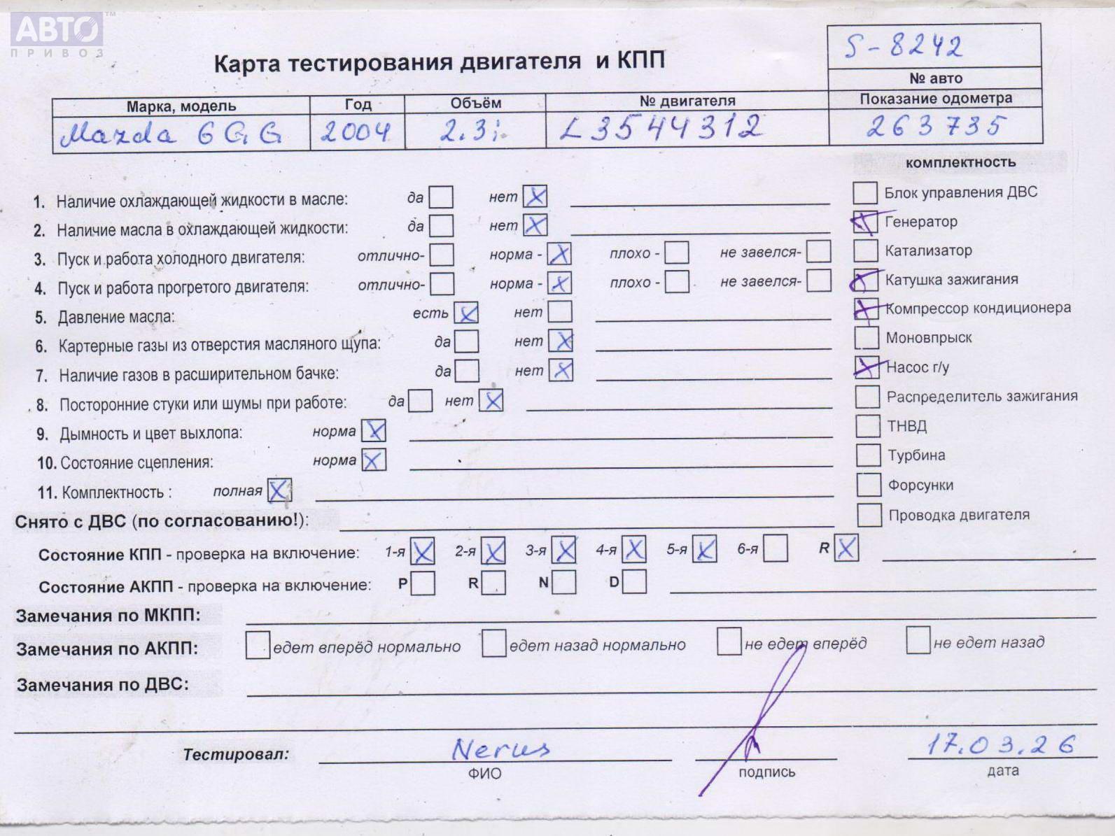 Хотите купить надежную б/у запчасть Двигатель (ДВС)? У нас в наличии есть б/у автозапчасти оригинальные, хорошего качества по приемлемым ценам. Практически на все наши запчасти мы предоставляем проверочный срок (от 14 до 30 дней) (https://www.autopriwos.by/return.html). На сайте Вы можете подобрать деталь по оригинальному номеру, маркировке. Каждая запчасть Двигатель (ДВС) для Mazda 6 GG/GY, 2004, купить б/у (55080616) проходит внешнюю проверку, чтобы исключить неработающие детали и обеспечит работоспособность нашей запчасти и вашего автомобиля.