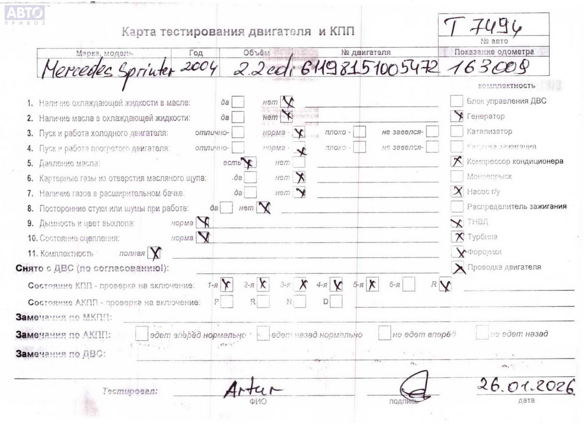 | Марка / Модель / Год: | Mercedes Sprinter W901-W905 (1995-2006) 2005 |