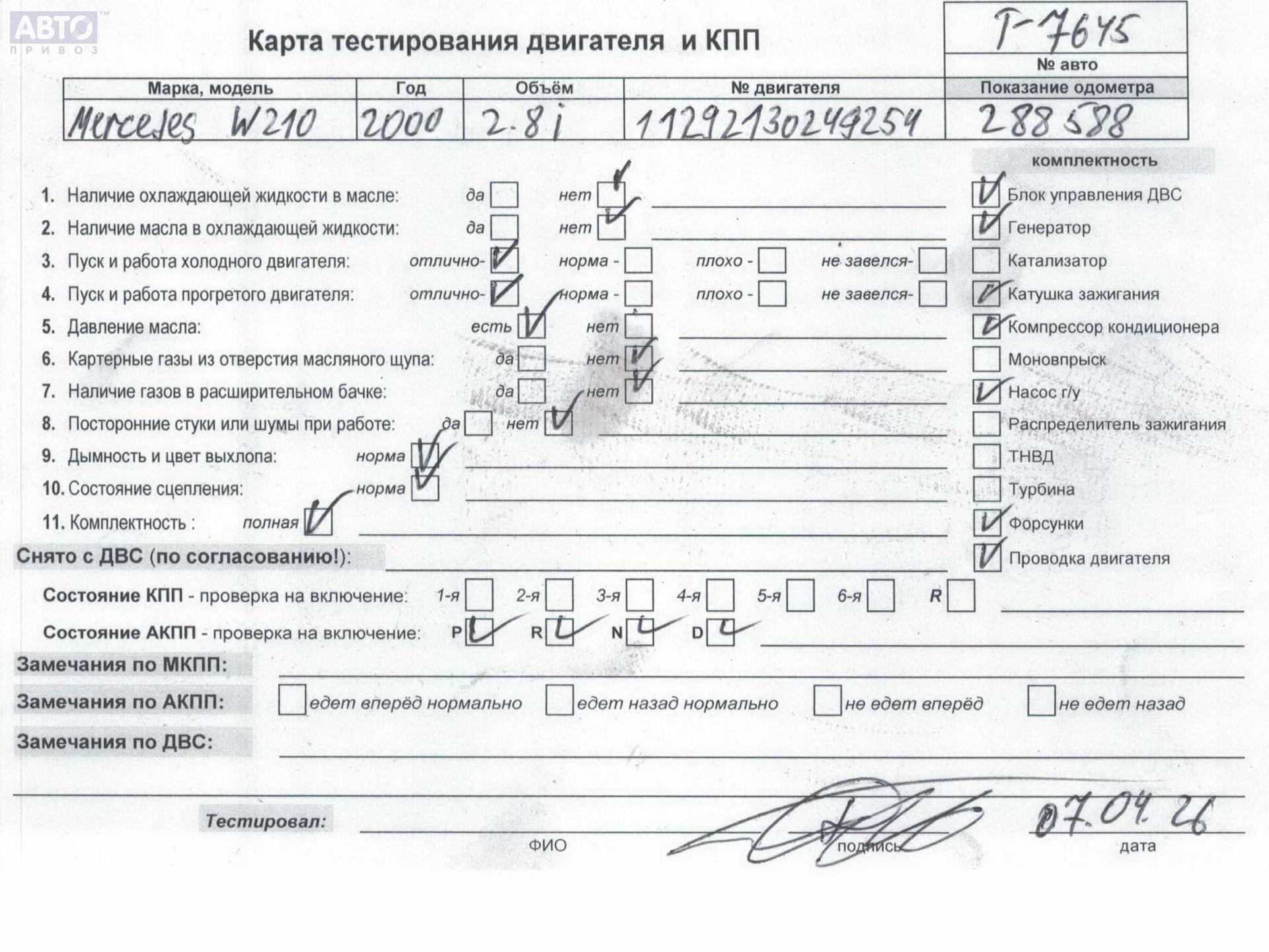 | Автомобиль / VIN: | T7645 WDB2100811X018369 |