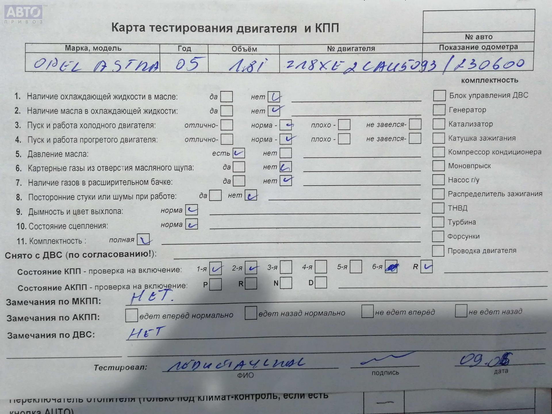 | Марка / Модель / Год: | Opel Astra H (2004-2009) 2005 |