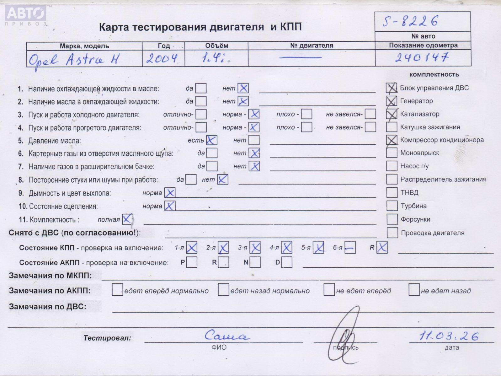 | Марка / Модель / Год: | Opel Astra H (2004-2009) 2004 |