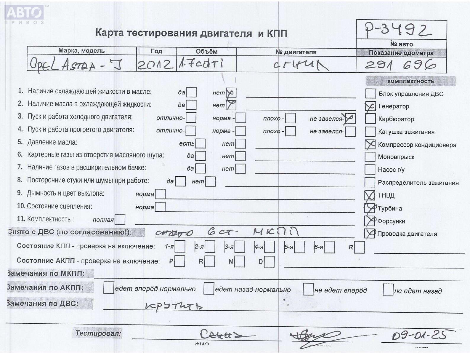 | Марка / Модель / Год: | Opel Astra J (2009-2015) 2013 |