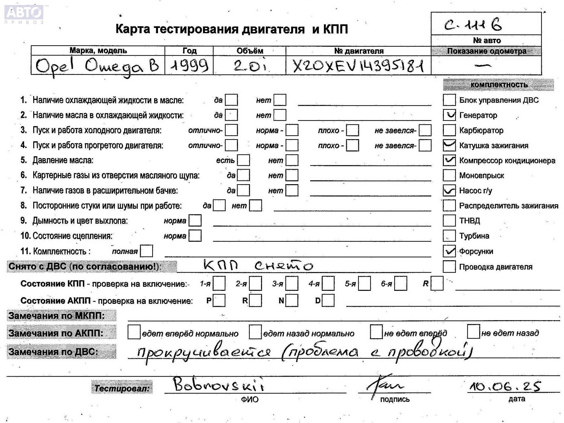 | Марка / Модель / Год: | Opel Omega B (1994-2003) 1998 |