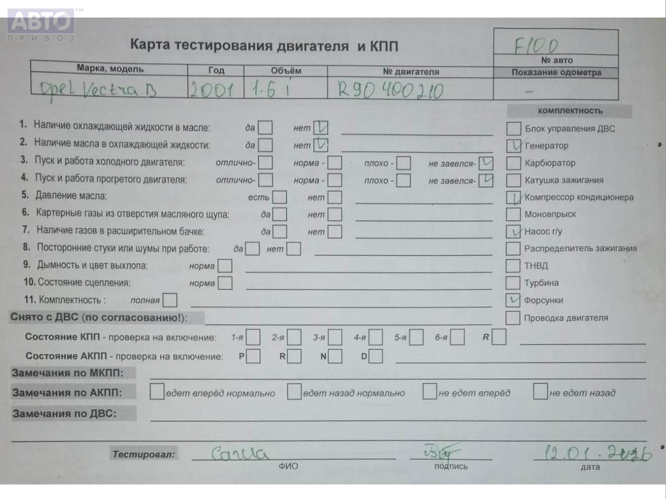 | Марка / Модель / Год: | Opel Vectra B (1995-2002) 2001 |