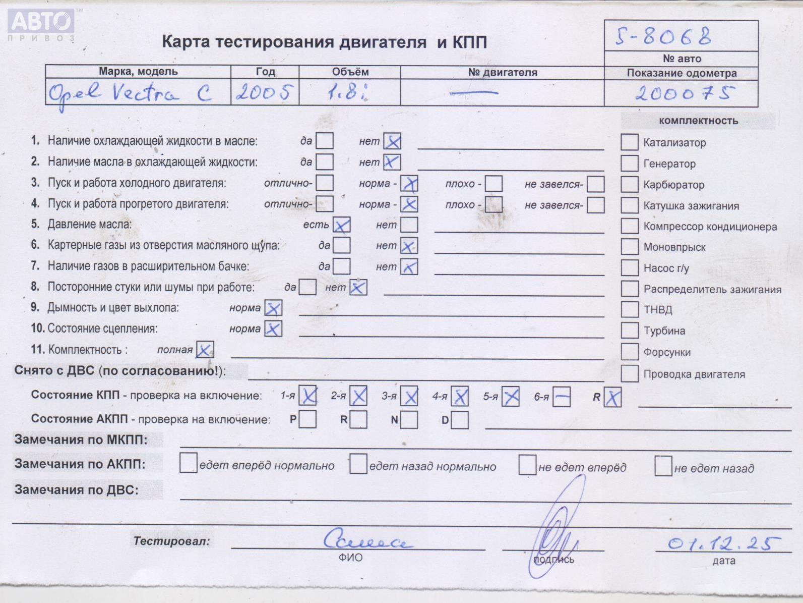 | Марка / Модель / Год: | Opel Vectra C (2002-2008) 2005 |