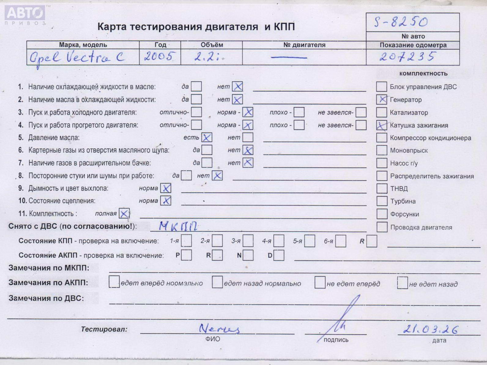 | Марка / Модель / Год: | Opel Vectra C (2002-2008) 2005 |
