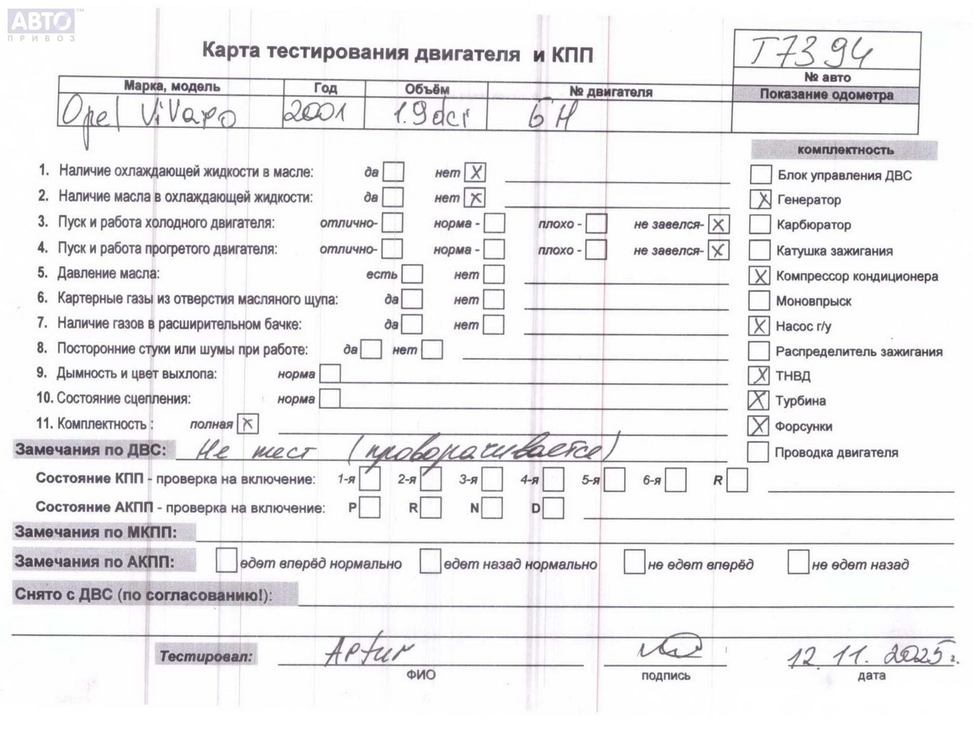 | Марка / Модель / Год: | Opel Vivaro A (2001-2014) 2004 |
