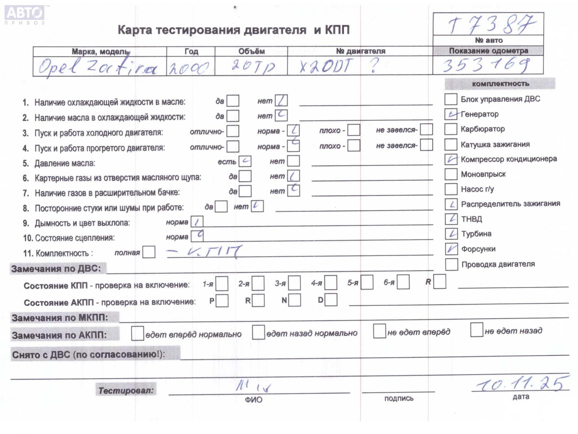 Купить с доставкой б/у X20DTL, Двигатель (ДВС) для Opel Zafira A, 2000, (54926100) с разборки в Минске и Беларуси.
