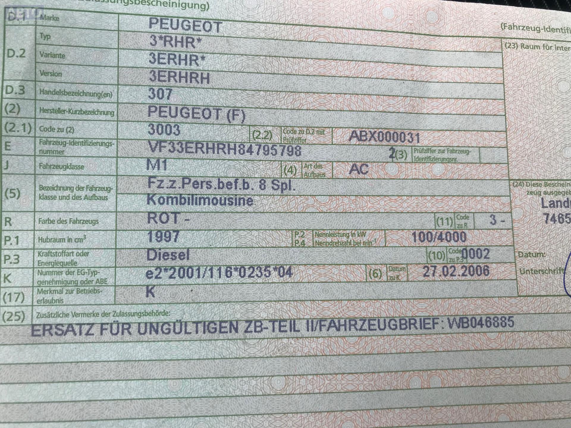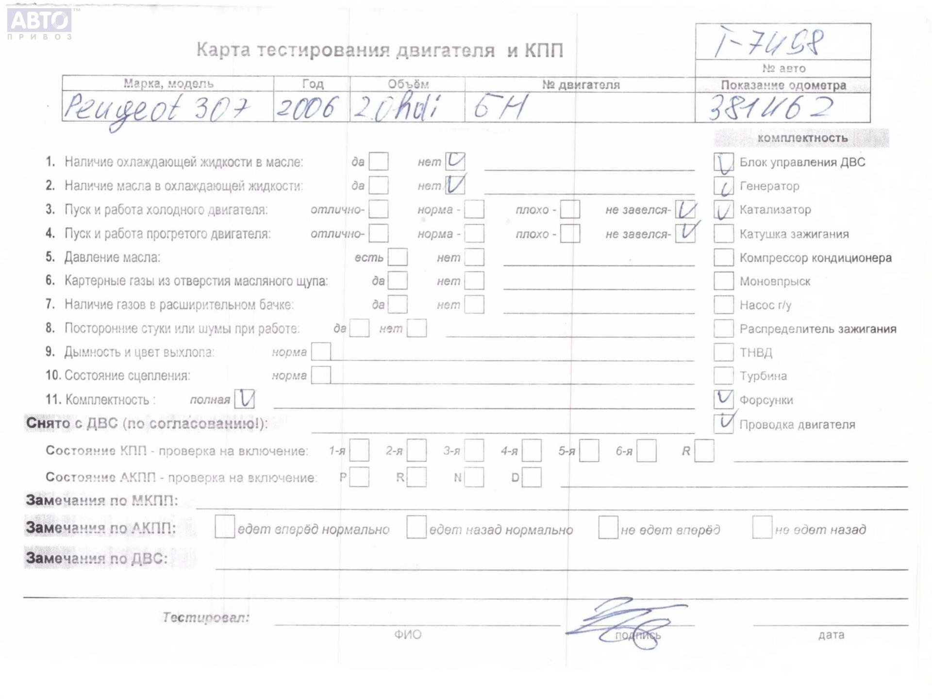 | Марка / Модель / Год: | Peugeot 307 2006 |