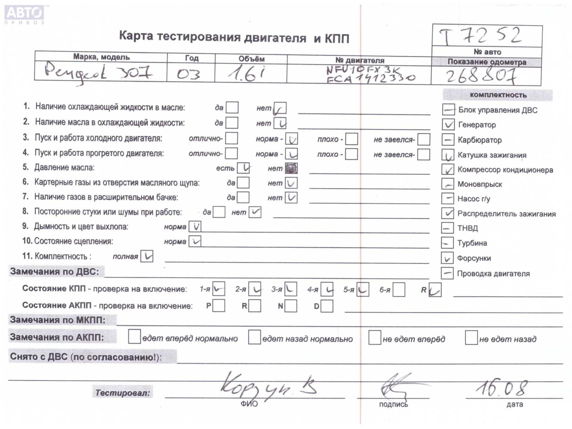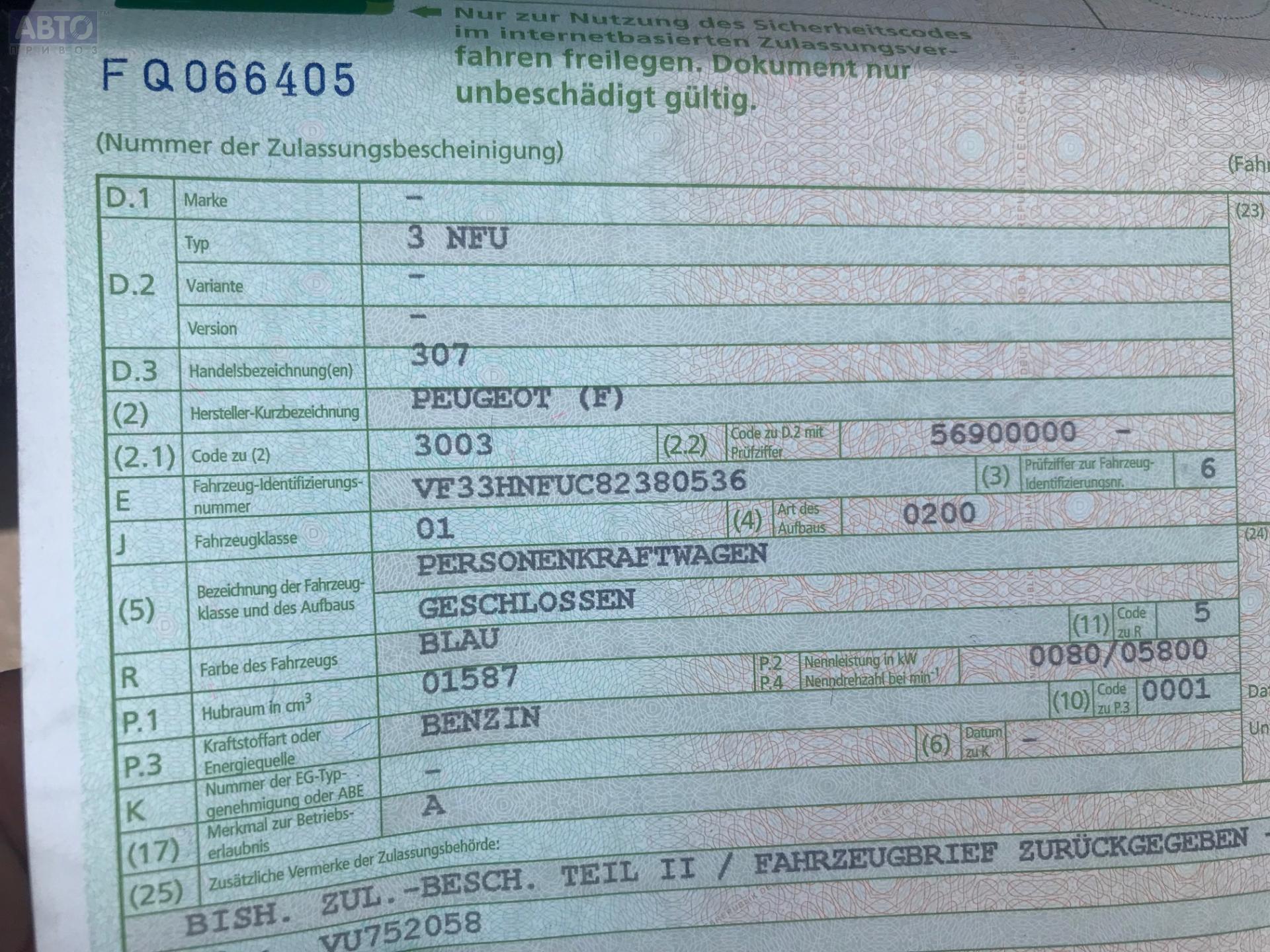 | Марка / Модель / Год: | Peugeot 307 2003 |