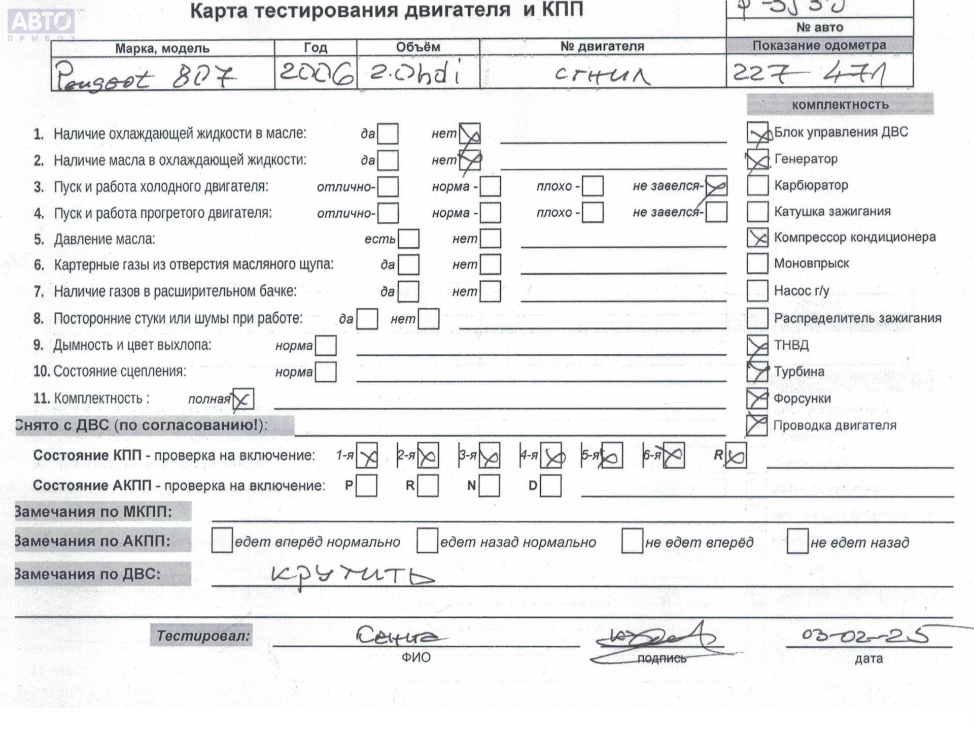 | Марка / Модель / Год: | Peugeot 807 2006 |