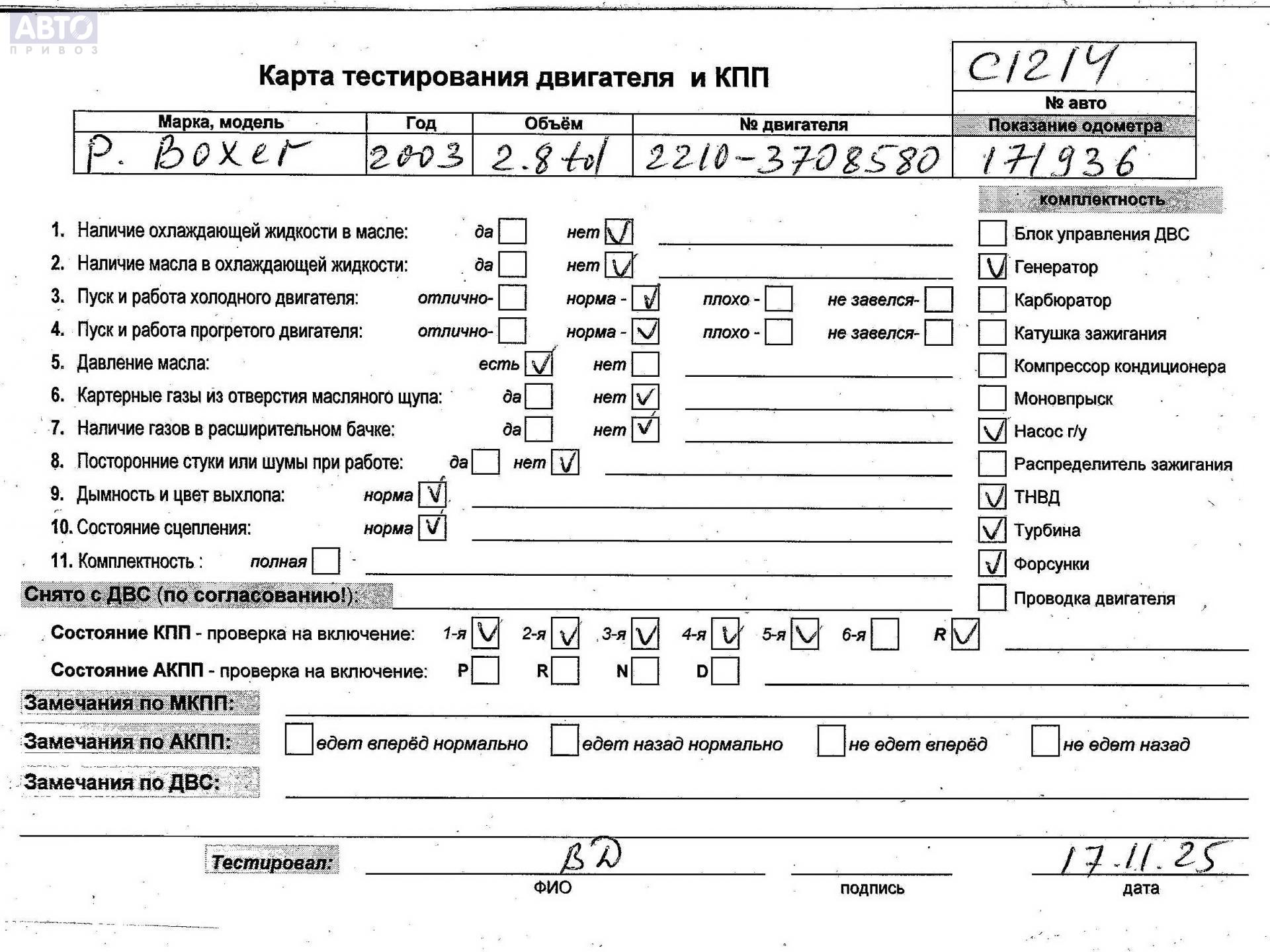 | Марка / Модель / Год: | Peugeot Boxer (2002-2006) 2002 |