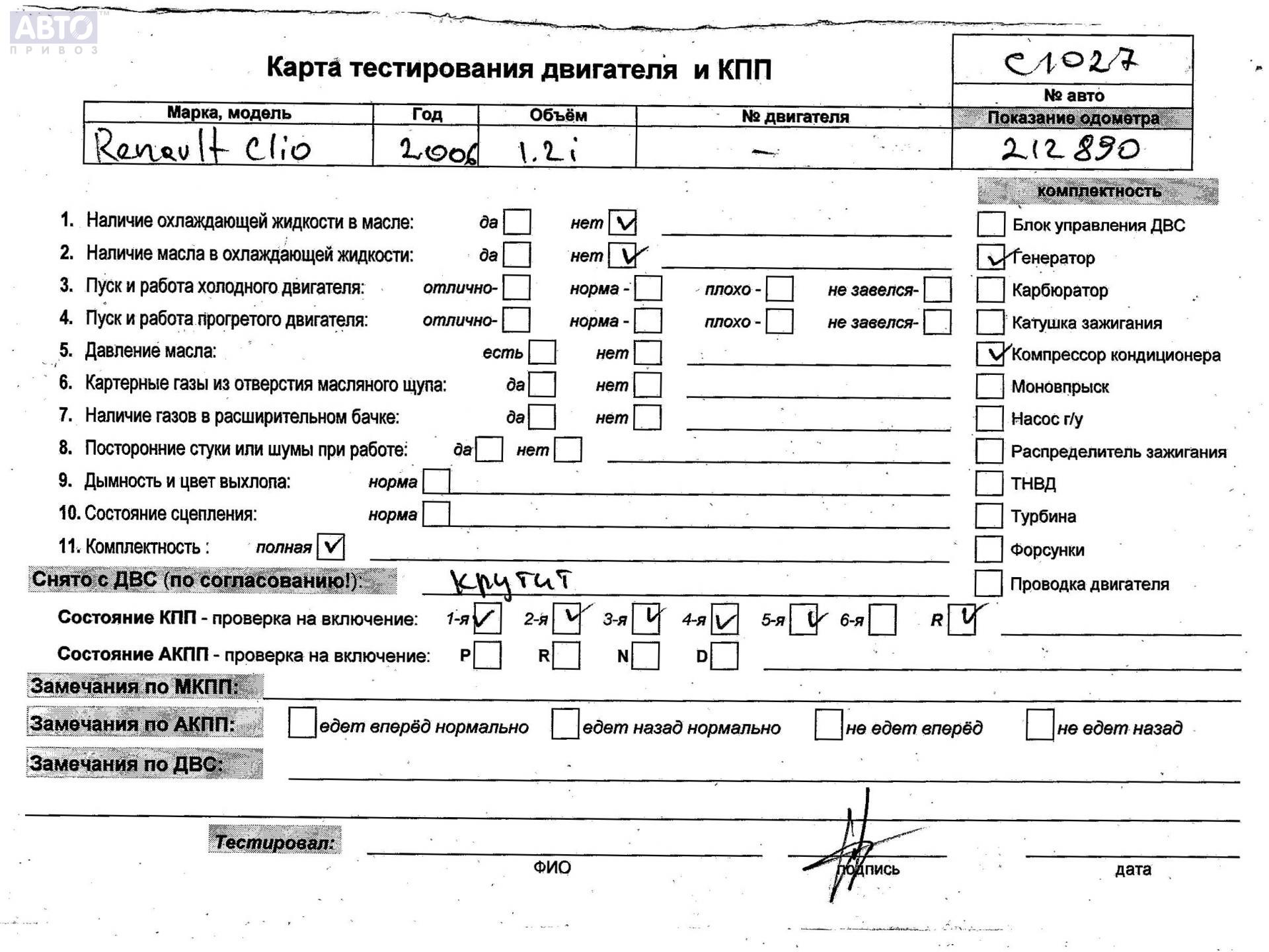 | Марка / Модель / Год: | Renault Clio II (1998-2008) 2006 |