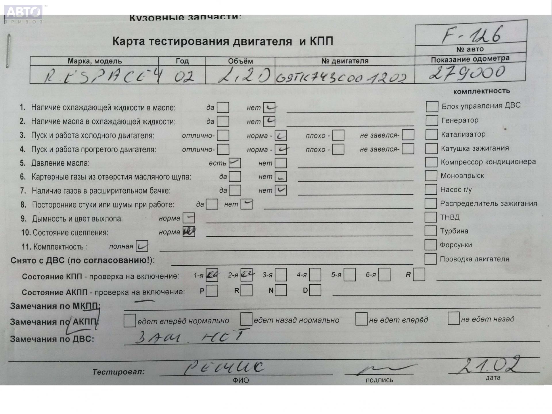 | Автомобиль / VIN: | F0126 VF1JK0HAB29409784 |