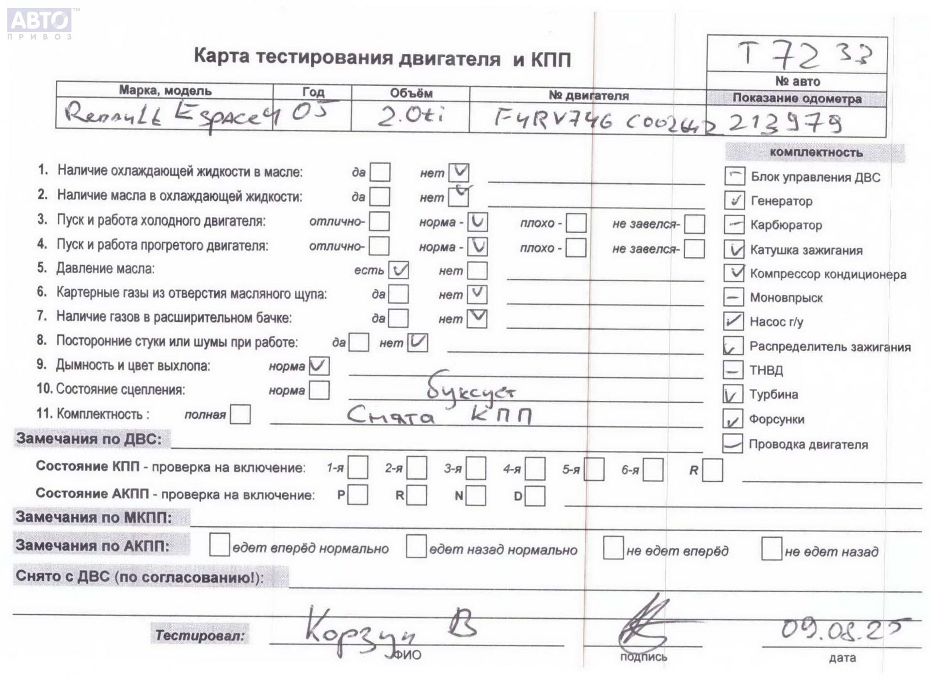 | Марка / Модель / Год: | Renault Espace IV (2002-2014) 2005 |
