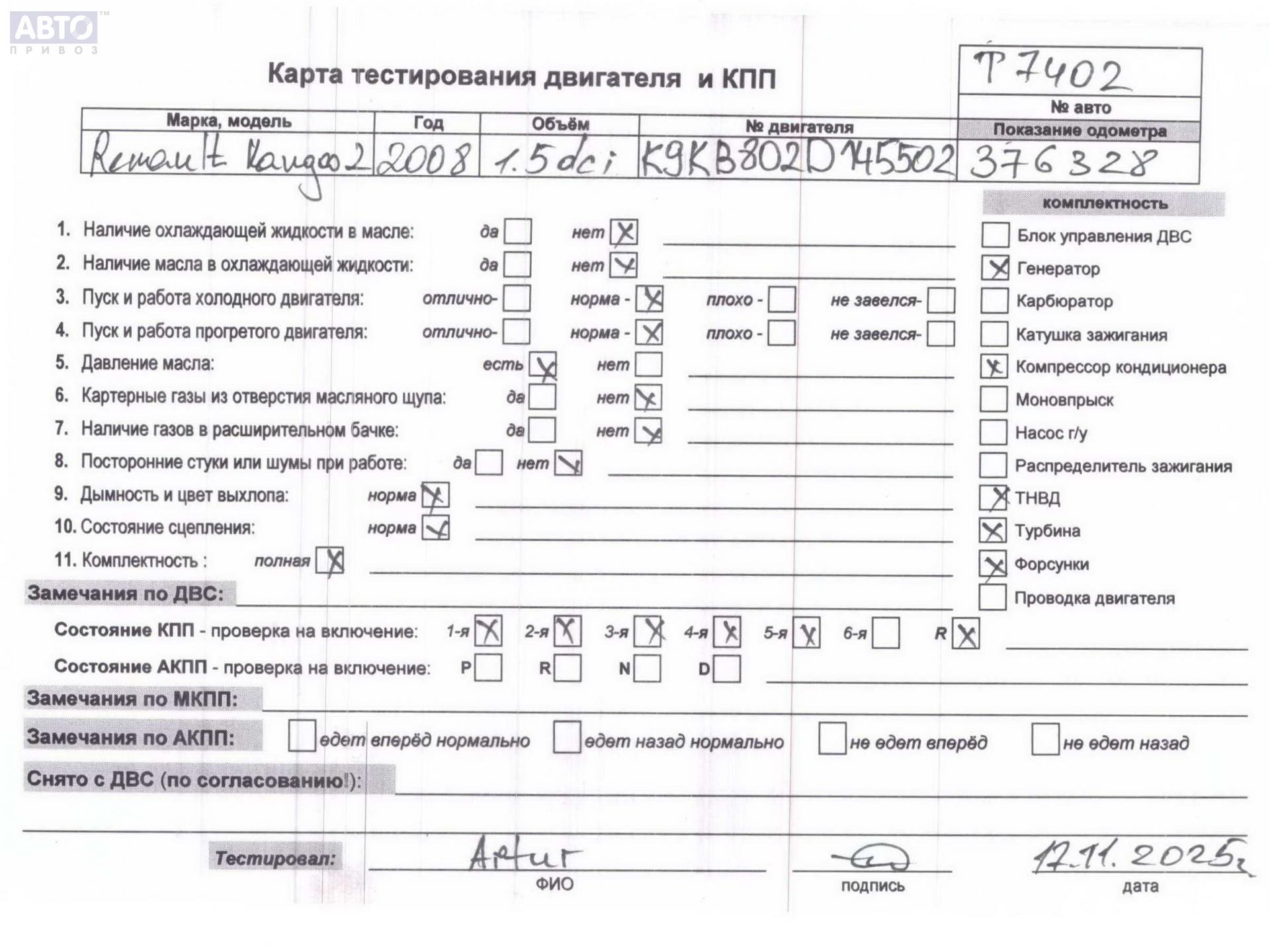 | Марка / Модель / Год: | Renault Kangoo II (2007-2021) 2008 |