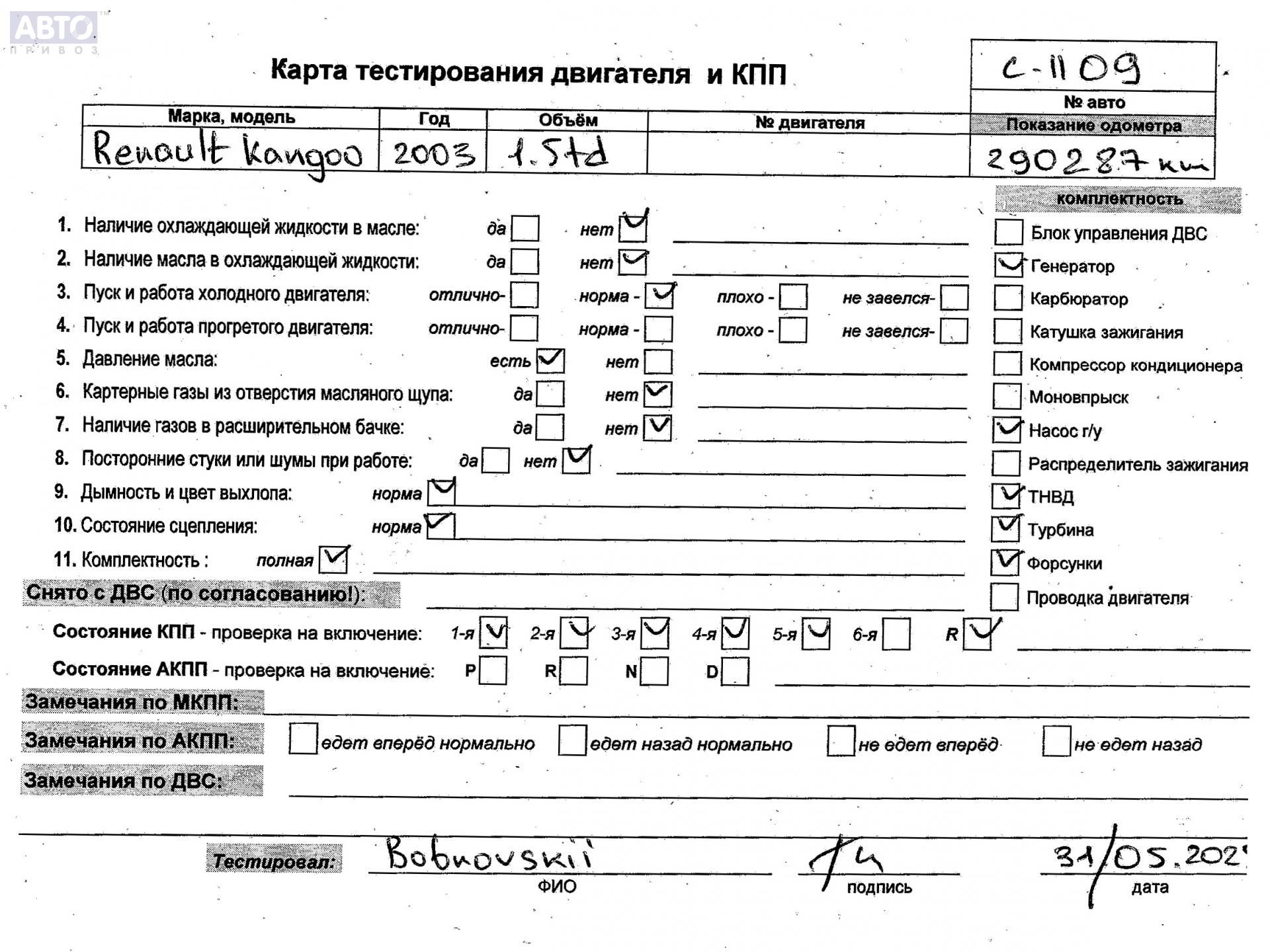 | Марка / Модель / Год: | Renault Kangoo I (1998-2008) 2003 |