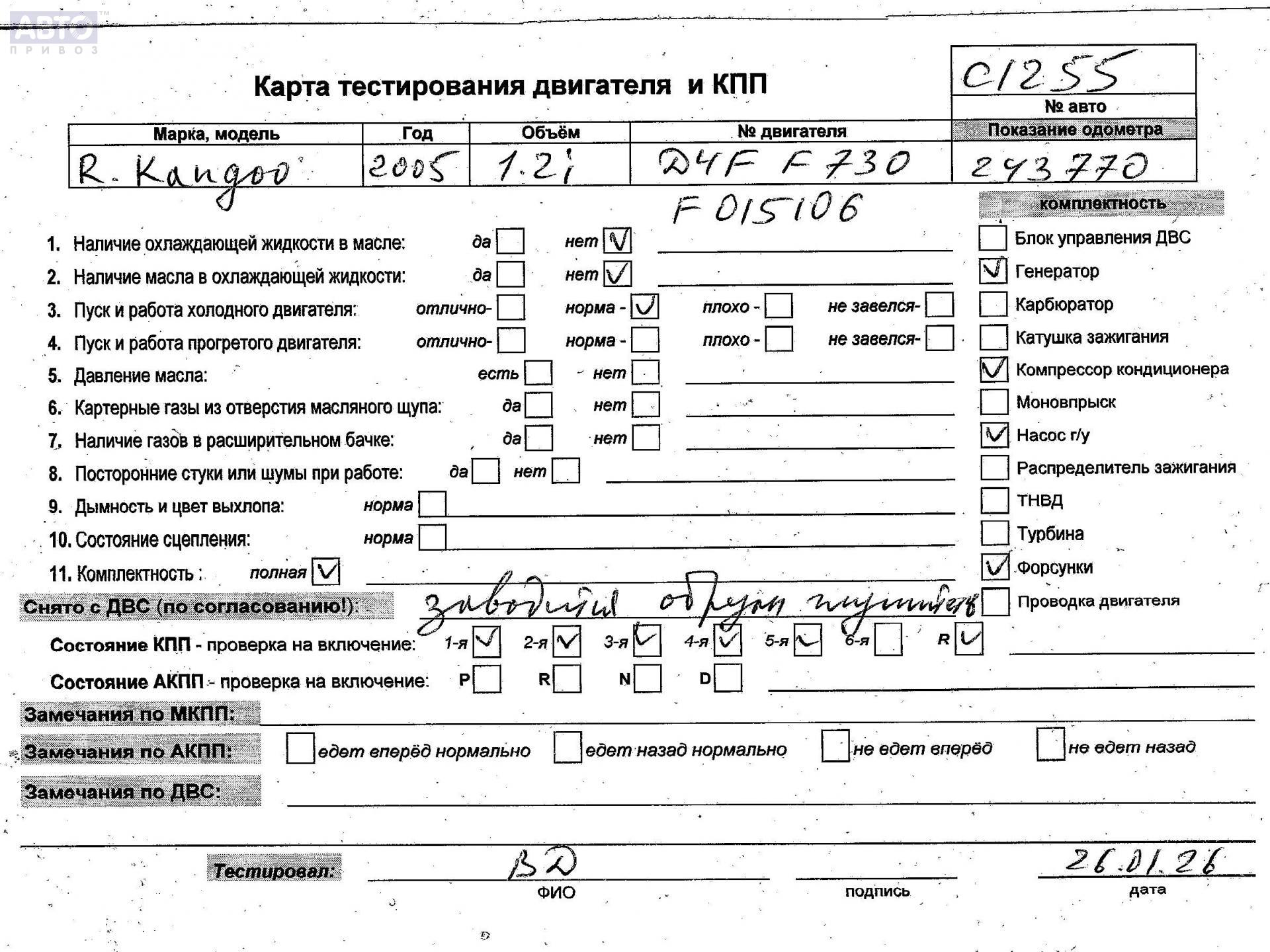 | Марка / Модель / Год: | Renault Kangoo I (1998-2008) 2005 |