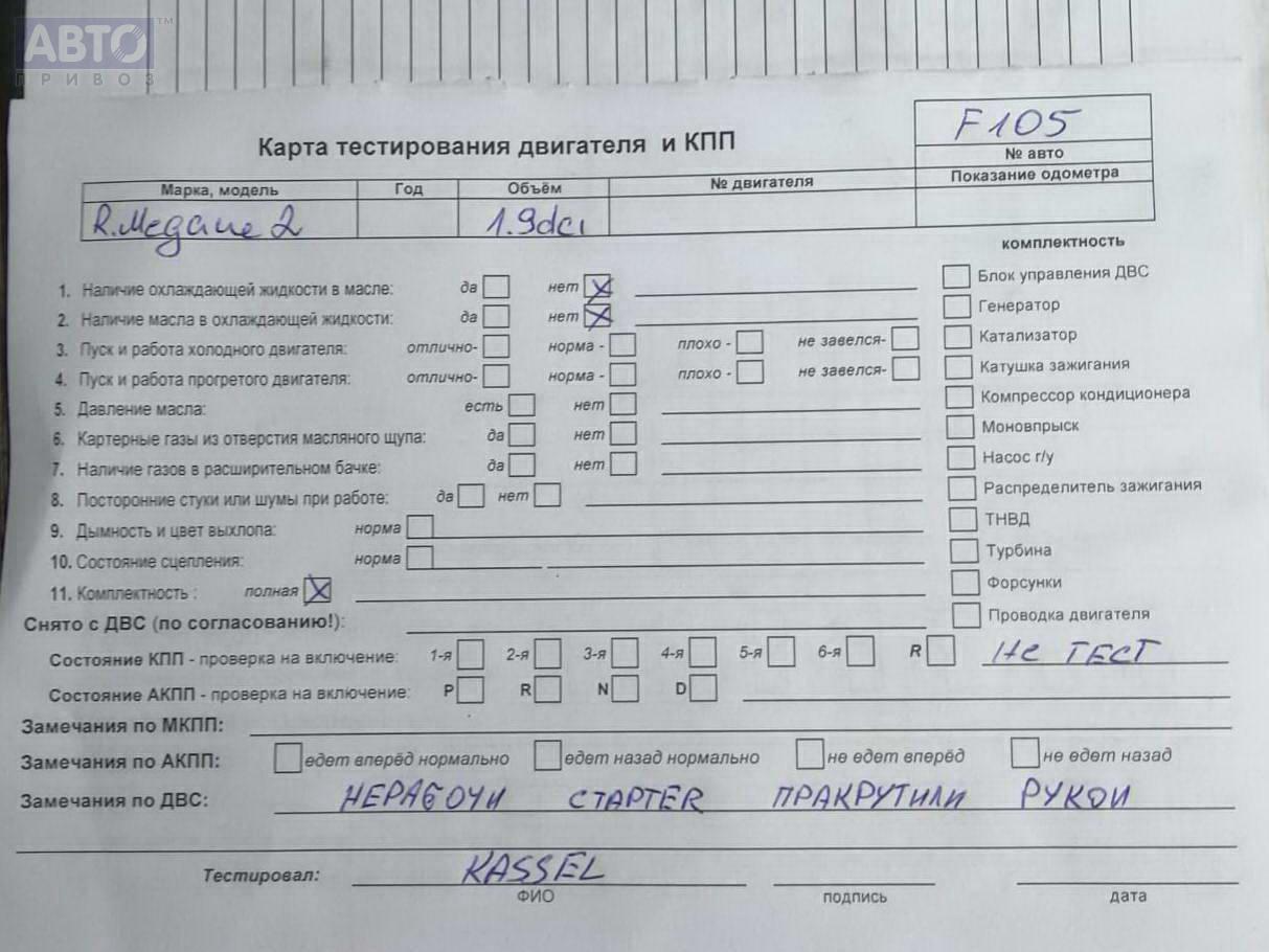 | Автомобиль / VIN: | F0105 VF1BMRG0633034152 |