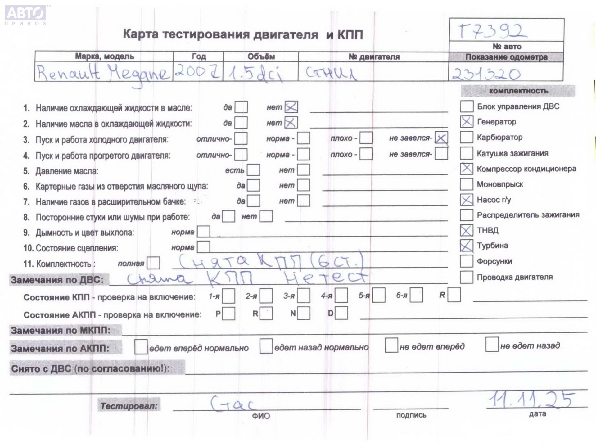 | Марка / Модель / Год: | Renault Megane II (2002-2008) 2007 |