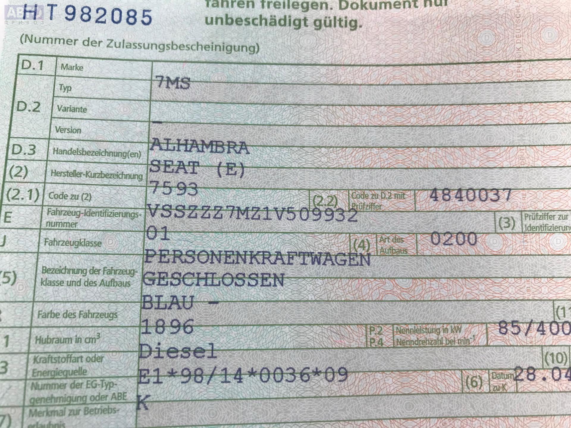 | Марка / Модель / Год: | Seat Alhambra (2000-2010) 2001 |