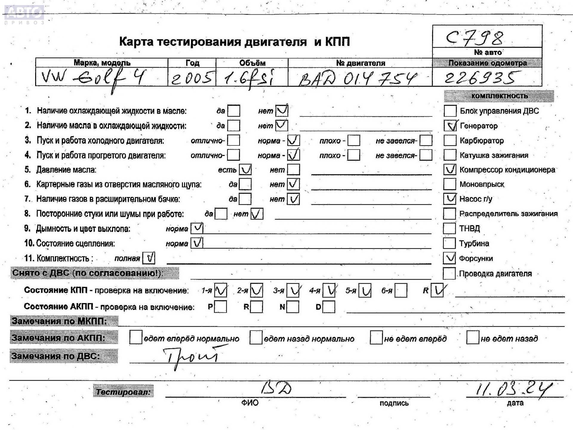 | Марка / Модель / Год: | Volkswagen Golf-4 2005 |